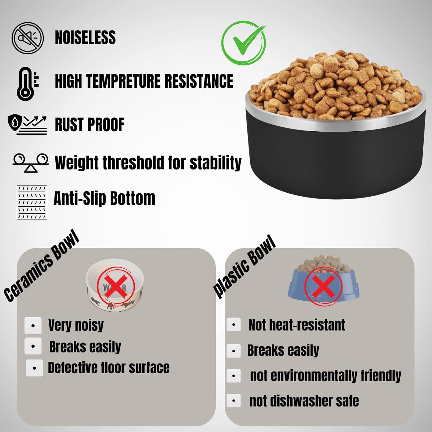 Double steel and Anti-slip bowl