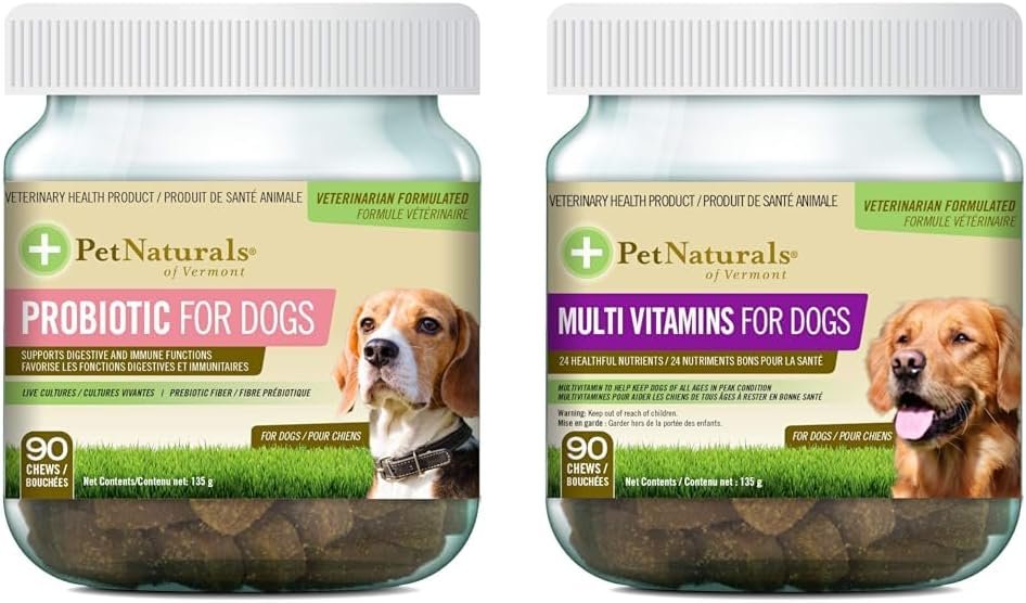Pet Naturals, Daily Probiotic for Dogs, Digestive Health Supplement, Natural Duck Flavor & Multi Vitamins for Dogs, Daily Multivitamin with 24 Healthful Nutrients, 90 Bite-Sized Chews Brown