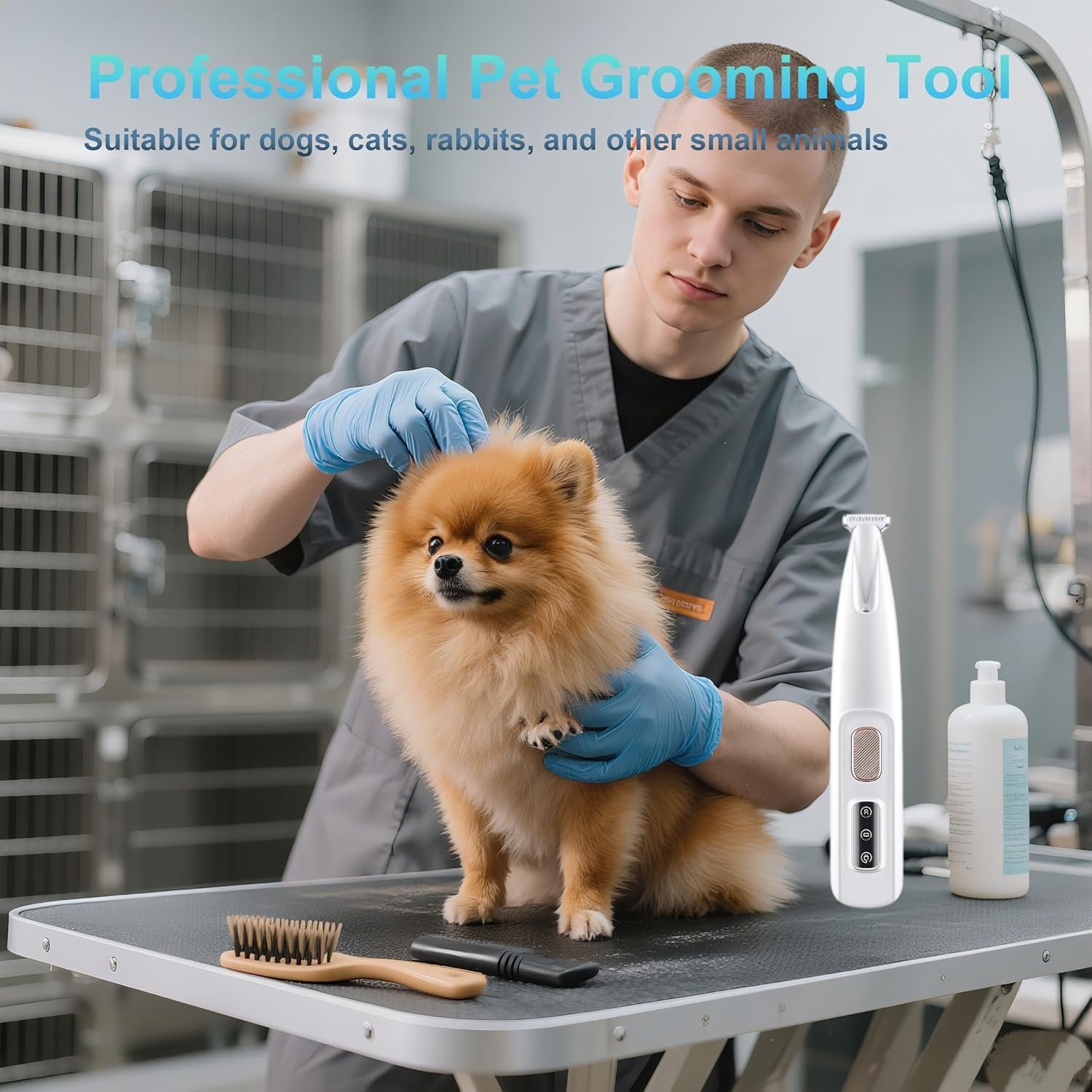 Pet Paw Trimmer, Electric Dog Paw Trimmer Rechargeable Waterproof Dog Grooming Clippers with Led Light, Low Noise Pet Hair Clippers for for Paws Eyes Ears Face Rump