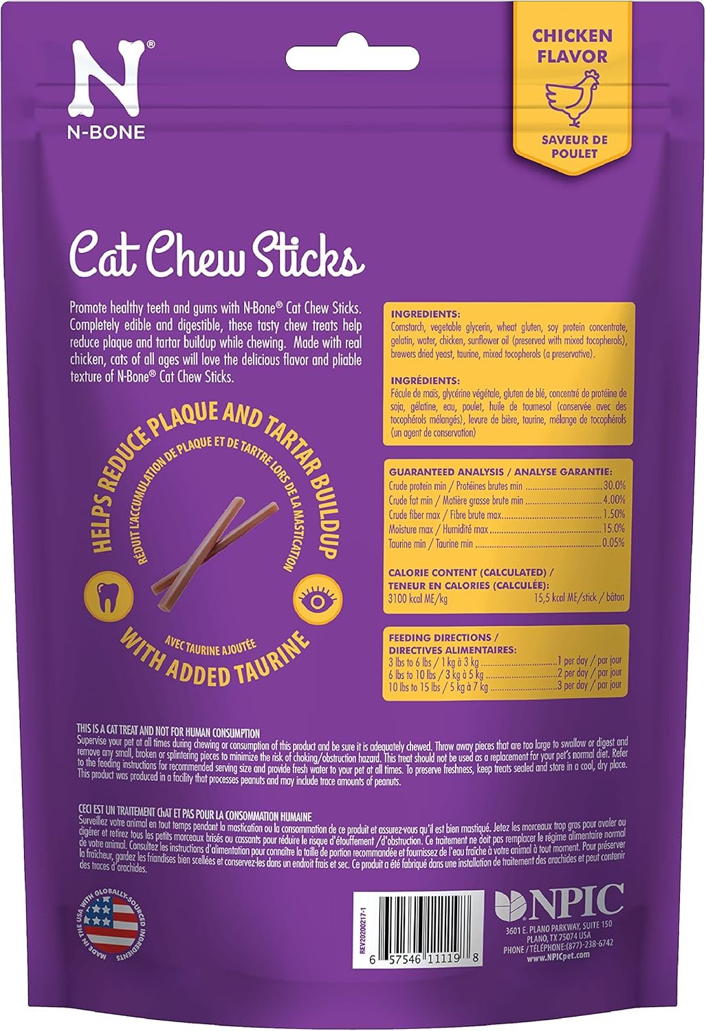 Product Highlight(s):Made with all natural ingredients and designed to clean teethLow in ash, magnesium, with taurine added, perfect combination for oral hygiene and nutritionCat Chew Treats are a treat chewing cats love.N-Bone Chicken Cat ChewHow to clean your cat`s teeth without actually trying: Cat Chew Treats are made with all natural ingredients and designed to clean teeth. There are few natural products on the market that can remove tartar as effectively as our Cat Chew Treats. Low in ash, magnesium, with taurine added, the N-Bone Cat Chew Treat is a perfect combination for oral hygiene and nutrition. Cat Chew Treats are a treat chewing cats love.