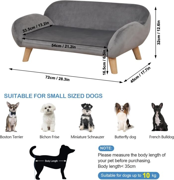 【Comfortable Pet Sofa Bed】— Couch for dogs that it made of featuring durable smooth luxury velvet slipcover and sturdy wood frame construction, simply and fashion design. our stylish pet couch bed will surely bring your dog a feeling of comfort and coziness.