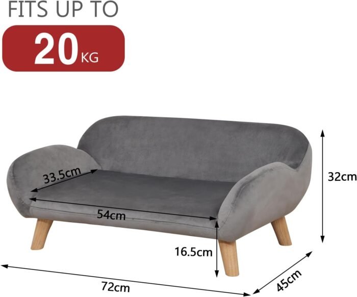 【Functional Snuggle Pet Couch】— small dog sofa with an overall size of L72 x W45 x H32cm , seat inner size:L54 x W33.5cm ,seat high:16.5cm , pet chair can perfectly bear your cute pet weight and keep safe and stable.