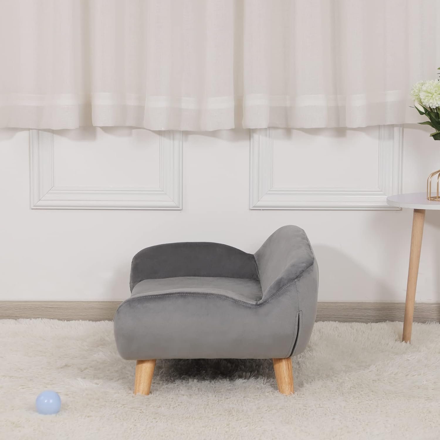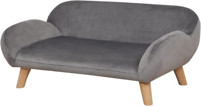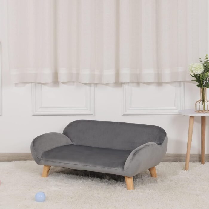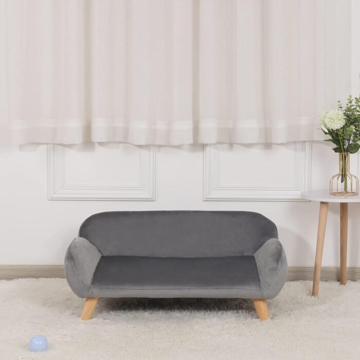 Pet Sofa/Velvet Fabric Small Dog Couch/Fashion Design Dog Sofas and Chairs/Wooden Frame Pet Bed/Dog Bed with Solid Feet/Sofa for Cat for Small Dog Using (Grey)
