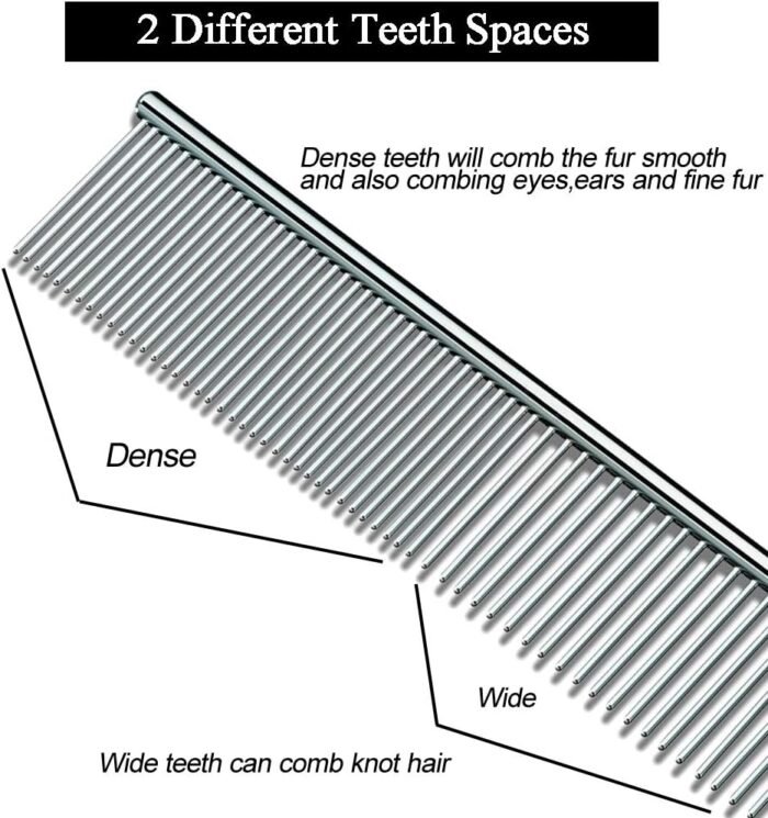 2 DIFFERENT TEETH SPACES: The thin side can be used to comb knotted fur and other sensitive areas, while the dense side is suitable for comb the soft fur nearby eyes, ears and legs.