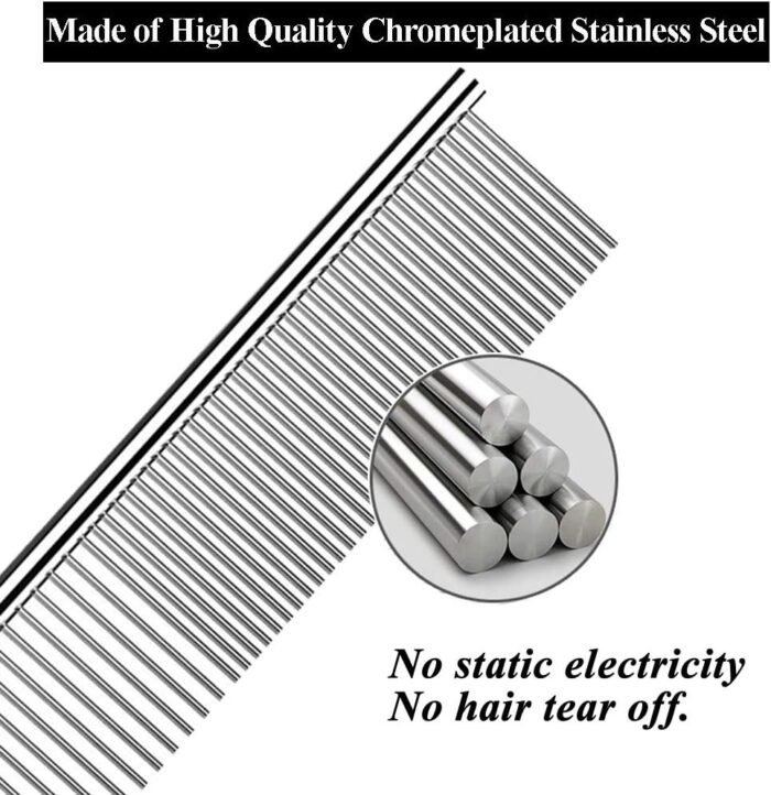 PREMIUM MATERIAL: Made of high quality chromeplated stainless steel, this comb is smooth and durable, corrosion resistant and will not fade, good for avoiding static electricity and hair tear off when used.