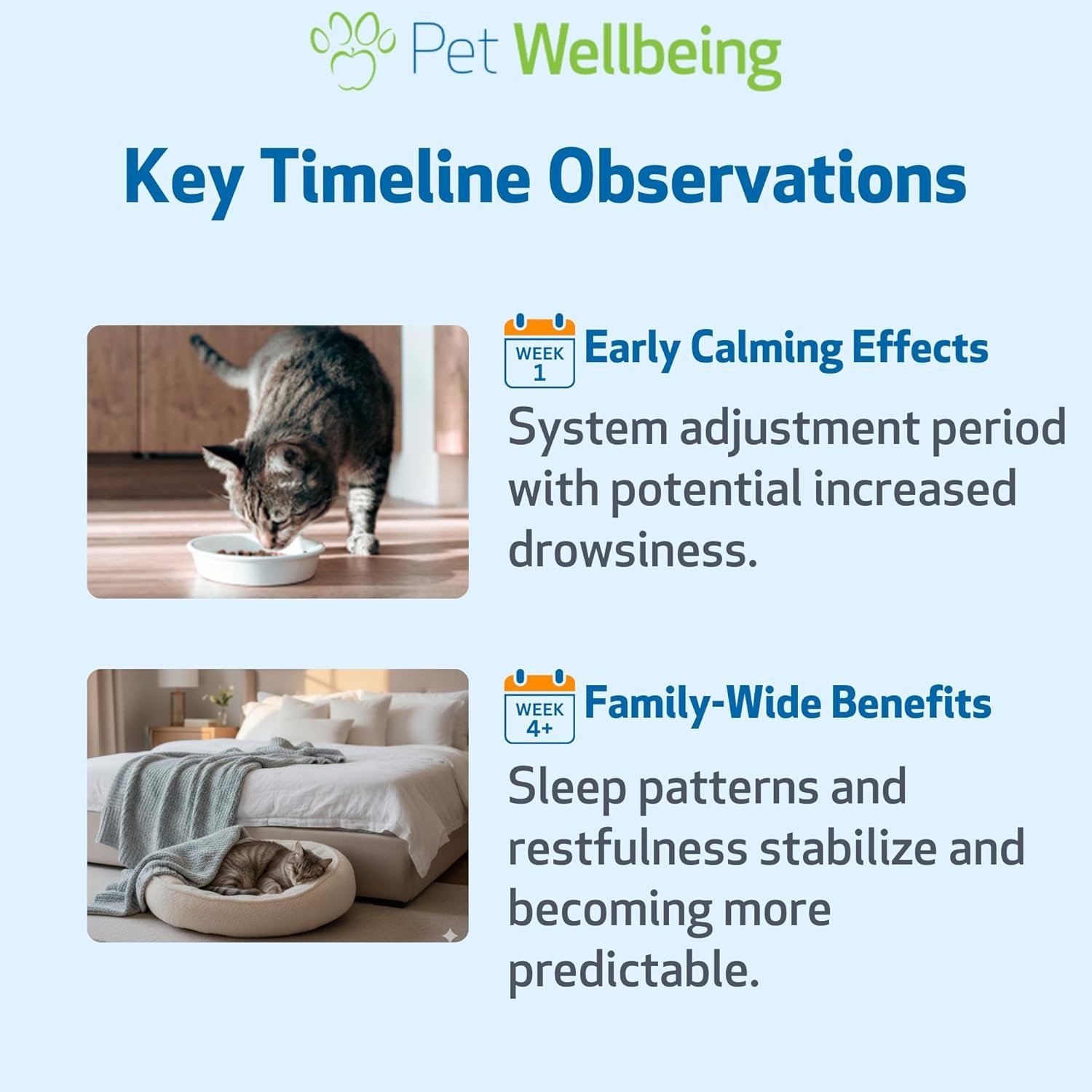 Pet Wellbeing Pet Melatonin supports your cat’s adrenal gland and thyroid function, and helps maintain healthy cortisol balance. Melatonin supplementation in cats has been shown to target the adrenal glands and their production of cortisol. Having a consistent level of melatonin in the body by daily administration of Pet Melatonin may help promote a normal, balanced cortisol output by the adrenal glands. Balanced cortisol levels, in turn, support healthy coat and hair growth, normal appetite, normal urination, and a calmer stress response. Pet Melatonin may help support your cat’s relaxation and sleep patterns.