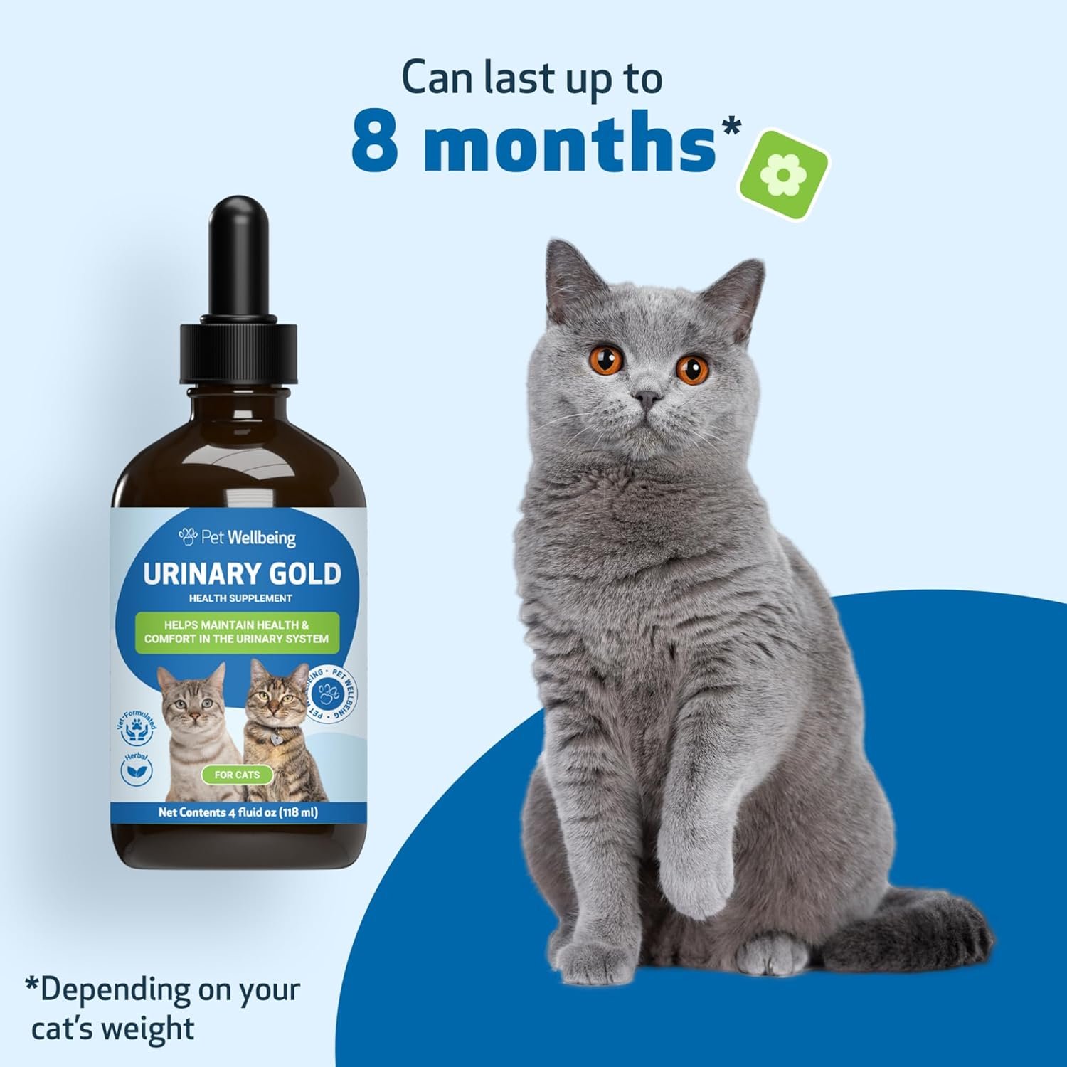 Pet Wellbeing Urinary Gold for Cats – Supports Urinary Tract Health, Normal Frequency, Healthy Immune Response, Stoneroot, Hydrangea – Herbal Supplement 4 oz (118 ml)