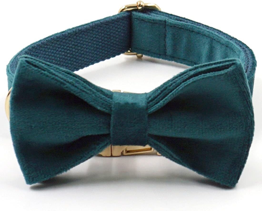 PETDURO Custom Dog Collar Personalized with Name Engraved Gold Metal Buckle for Large Medium Small Boy and Girl Dogs – Dog Leash and Bow Tie Set Available – Soft Comfy Velvet (Gem Green, M)