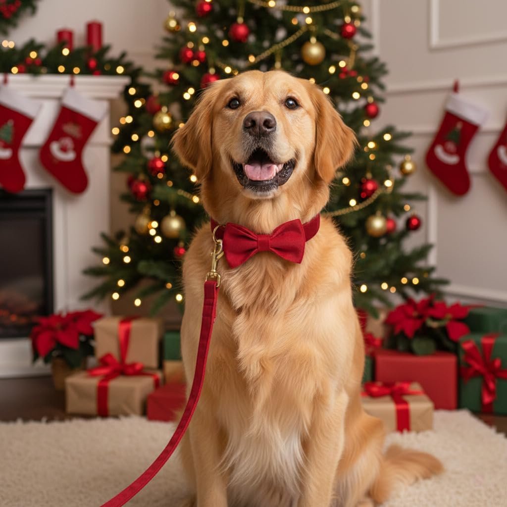 MATCHING DOG LEASH BOW TIE & POOP BAG HOLDER: The matching dog leash, bow tie and poop bag holder are made from the same material as the dog collar. They can make your dogs stay in style and fashion.