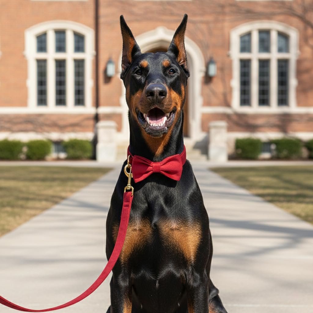 The matching dog bow tie features two hook and loop closures straps at back, which allows you easily make it attached to and removed from dog collar.