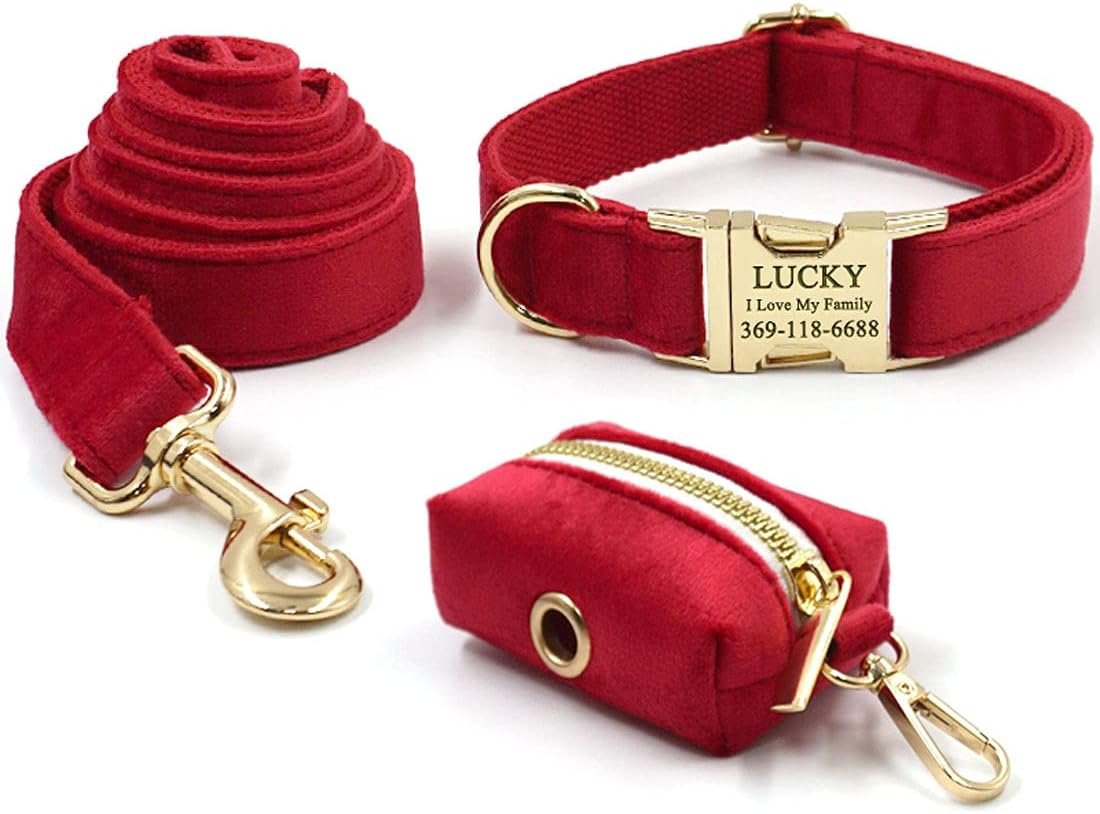PETDURO Personalized Dog Collar Red Velvet with Name Engraved Metal Buckle