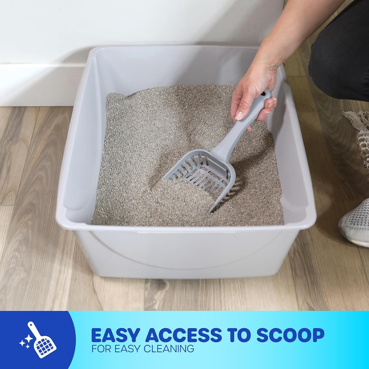 EASY-LIFT PAN: This jumbo litter box is rimmed on all sides to easily lift and move the pan. Keep your home clean and keep litter where it belongs