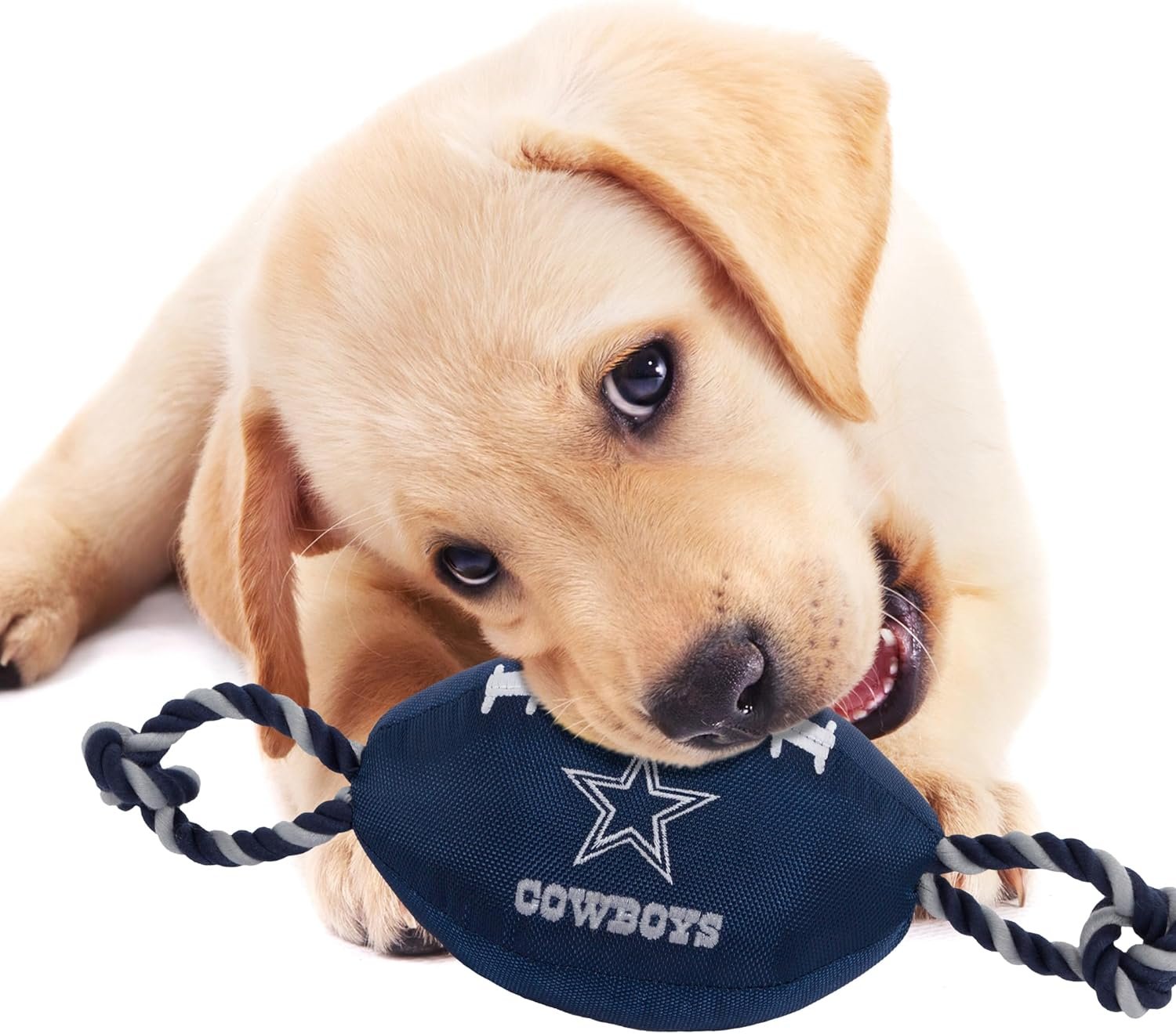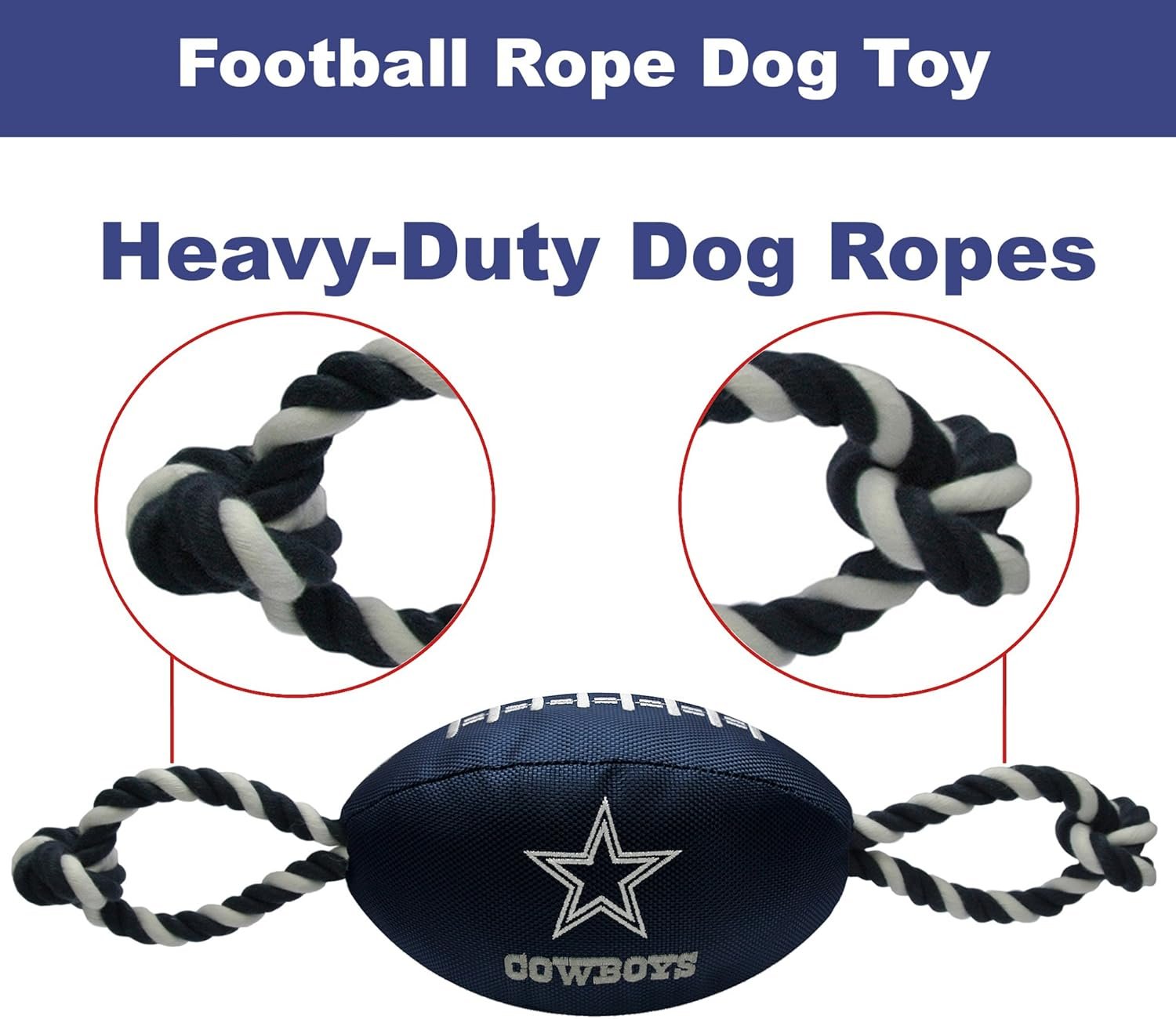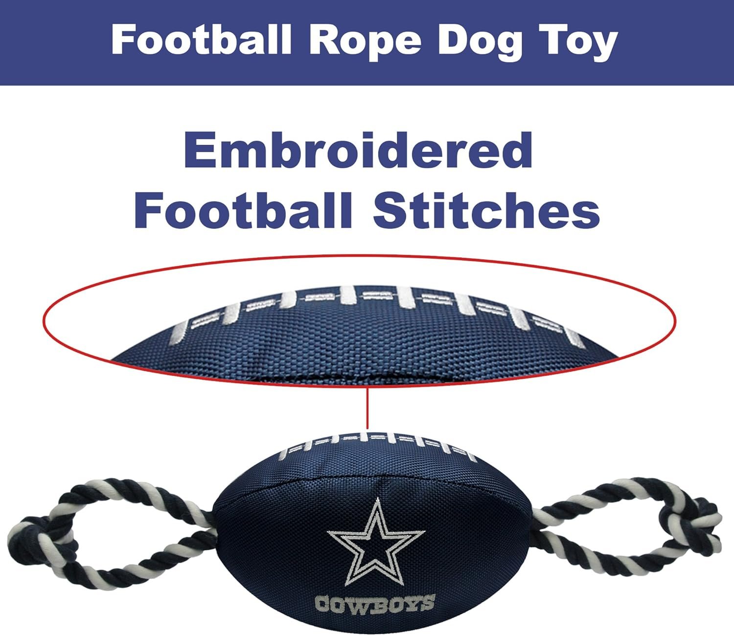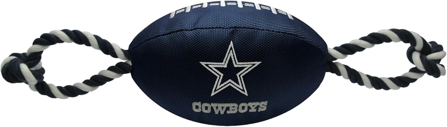 Pets First NFL Dallas Cowboys Football Dog Toy, Tough Quality Nylon Materials, Strong Pull Ropes, Inner Squeaker, NFL Team Color