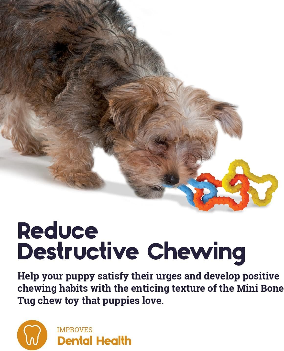 REDUCE DESTRUCTIVE CHEWING: Help your puppy satisfy their urges and develop positive chewing habits with the enticing texture of the Mini Bone Tug chew toy that puppies love.