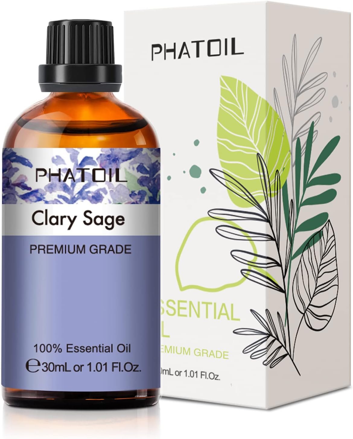 PHATOIL 1.01FL.OZ/30ML Clary Sage Essential Oil, Pure Essential Oils for Diffuser for Home and Office, DIY Candle and Soap Making