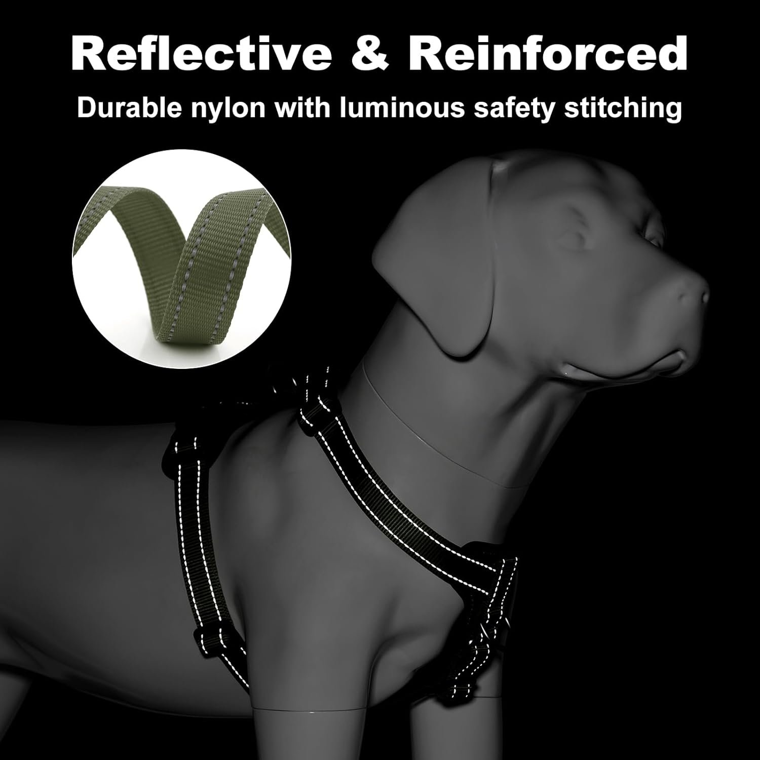 Premium Reflective Safety Features. High-visibility reflective stitching ensures your dog stays visible in low-light conditions—whether you’re out on a sunrise hike, evening stroll, or just crossing the street