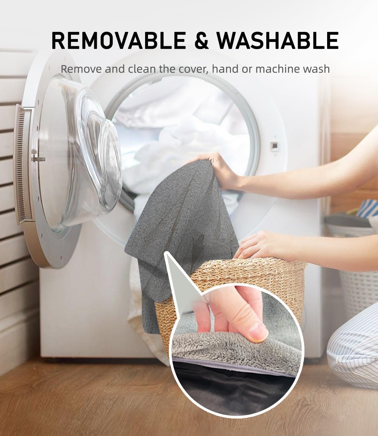 【Waterproof & Washable Design】 Incorporates an internal waterproof PVC shell and an external soft micro-plush cover. The easily removable, machine-washable cover ensures durability and cleanliness.