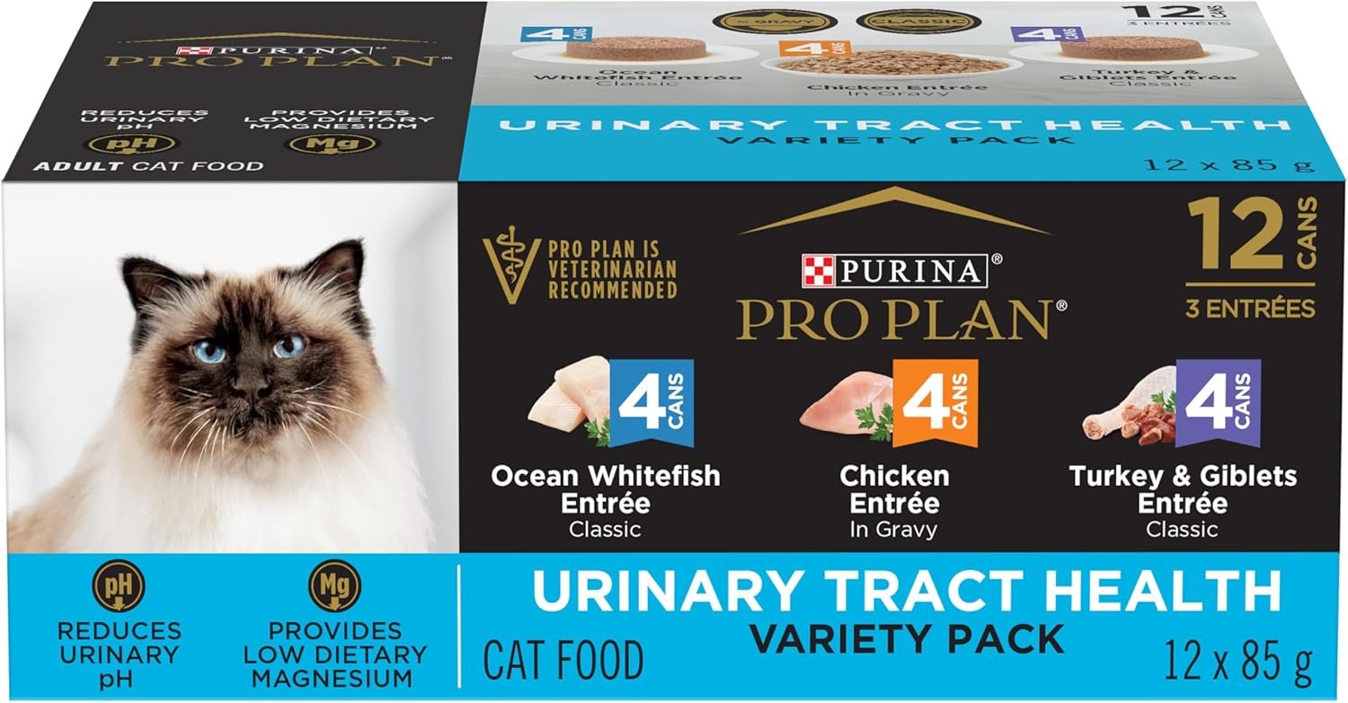 Pro Plan Wet Cat Food, Urinary Tract Health, Variety Pack 85g can (12 pack) (Packaging May Vary), Brown