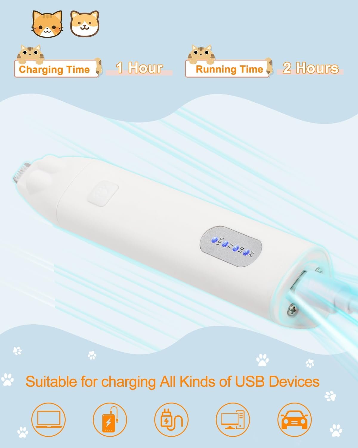 **Convenient LED Indicator**: Never run out of battery mid-grooming! The built-in LED indicator keeps you informed when it’s time to recharge your paw trimmer for dogs, ensuring you’re always ready for those important grooming moments.