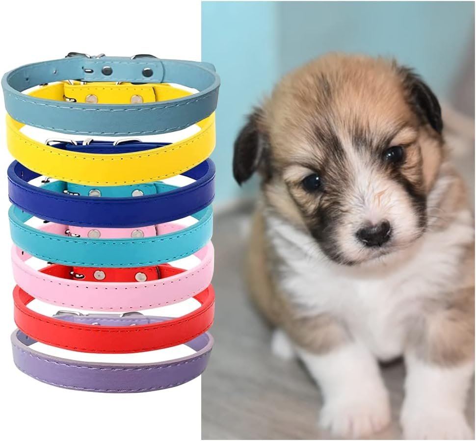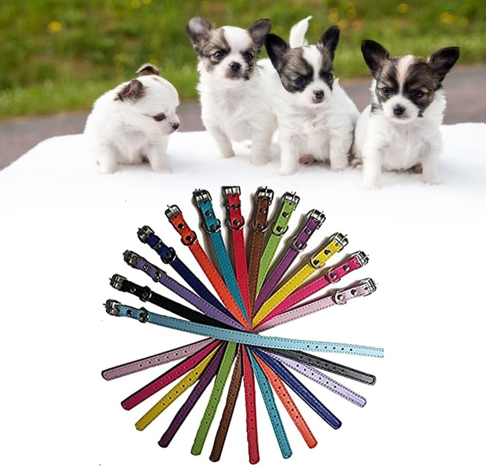 Puppy ID Collars, Soft Leather Dog Collar,14 Colors PU Leather Adjustable Dog Cat Collars for Dog Small Large Cat Collars Newborn Puppies Kitten (Flat-14 Colors, XS(0.47″*12.9″))
