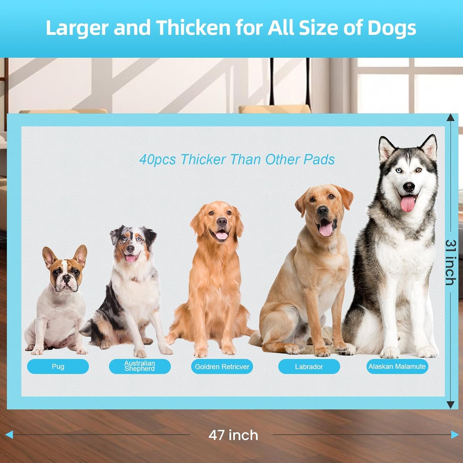 Puppy Pee Pads for Dogs Extra Large 31″x47″ 40 Count, Leak-Proof & Super Absorbent, Thicken Disposable Potty Training Pads for Doggie Cats Rabbits, Quick Dry Pet Piddle Pad