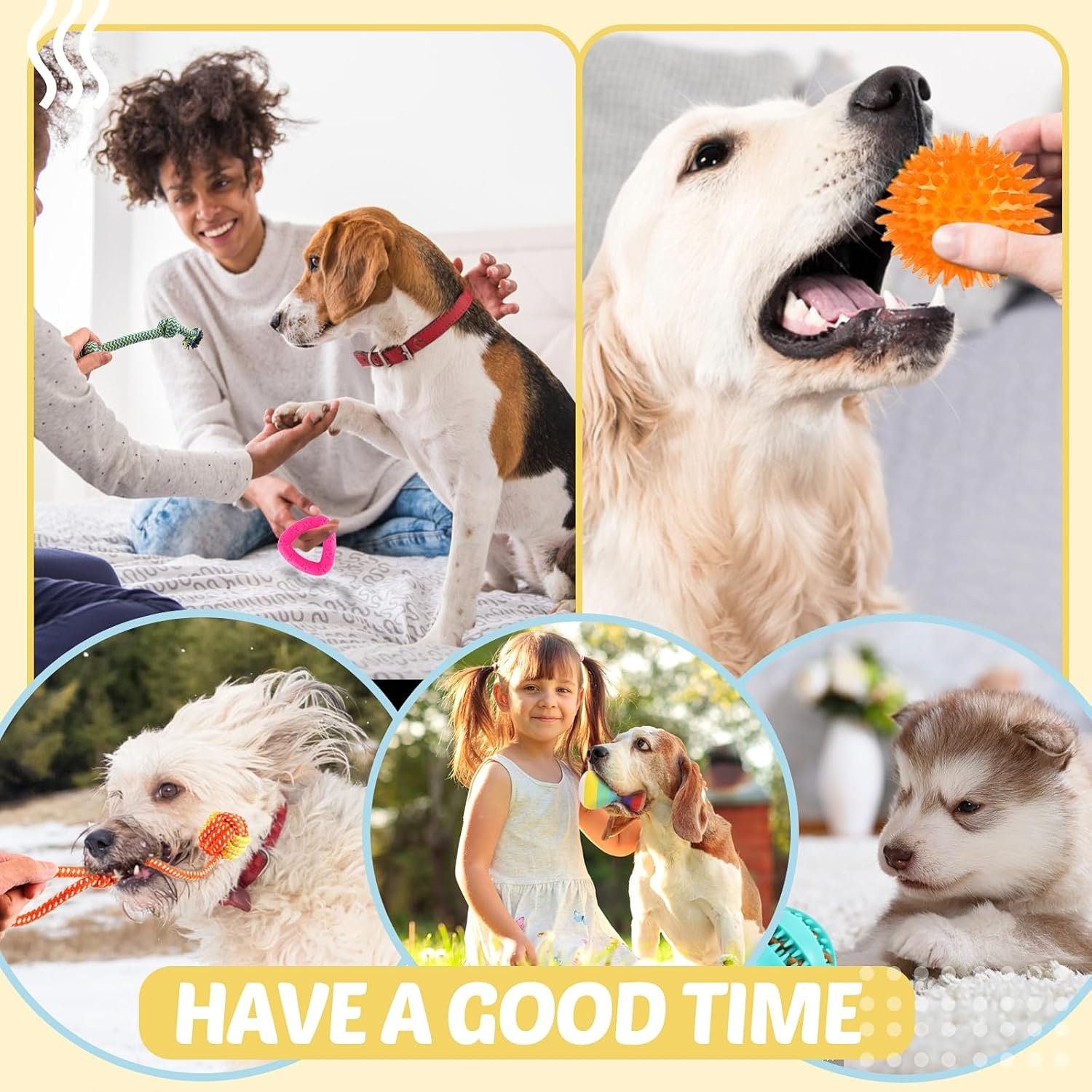 Interactive Training Puppy Toys–The squeaky toys capture your dog’s attention, keeping them focused and releasing energy with continuous bites. Rope toys and treat balls are perfect for interactive games like tug-of-war and fetch, strengthening your bond with your pet.