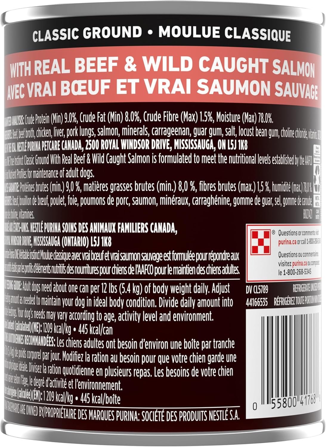 Purina ONE Classic Ground True Instinct Wet Dog Food, Beef & Salmon – 368 g Can (12 Pack)