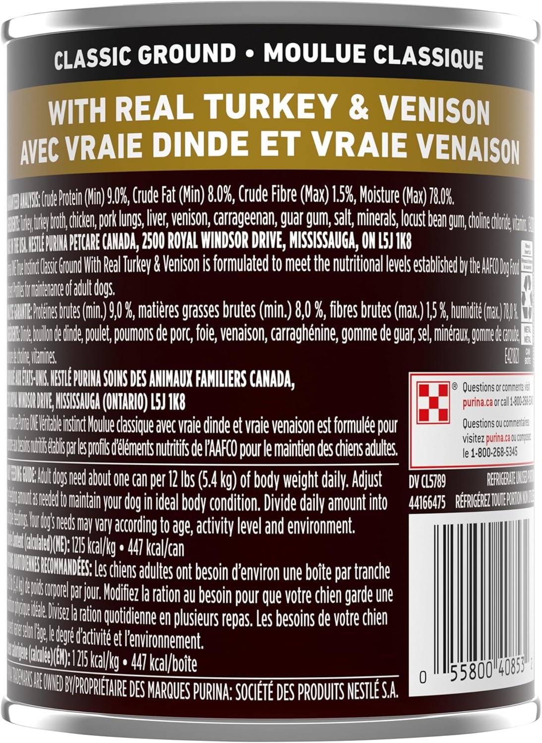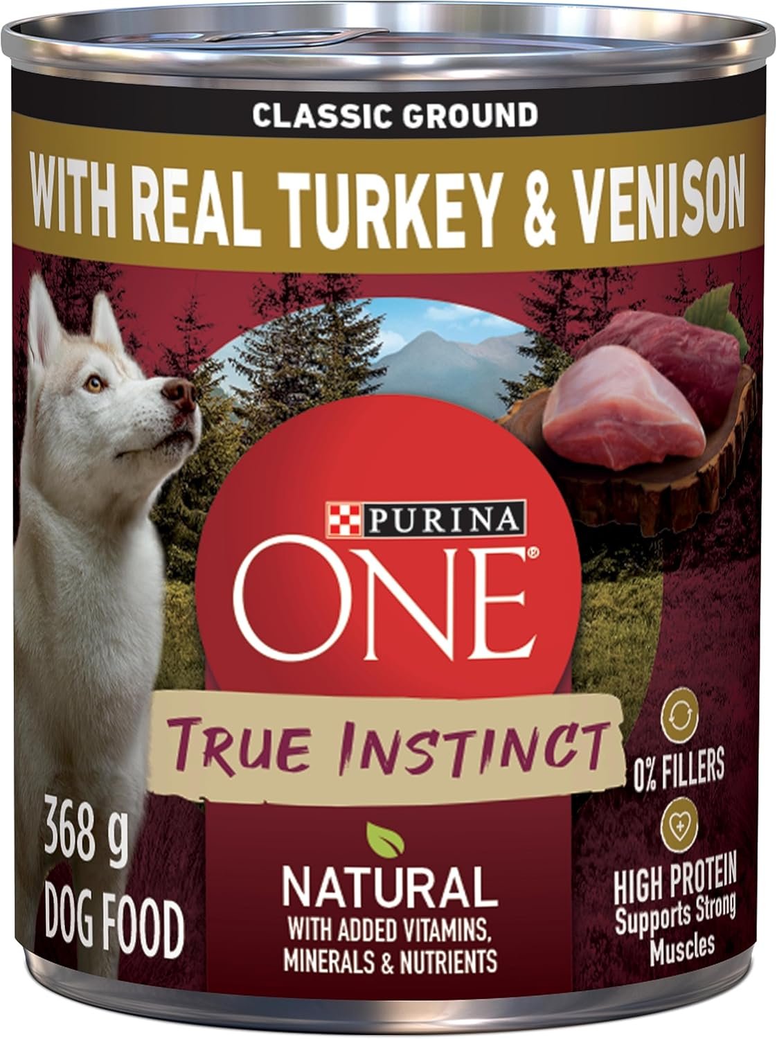 Purina ONE Classic Ground True Instinct Wet Dog Food, Turkey & Venison – 368 g Can (12 Pack)