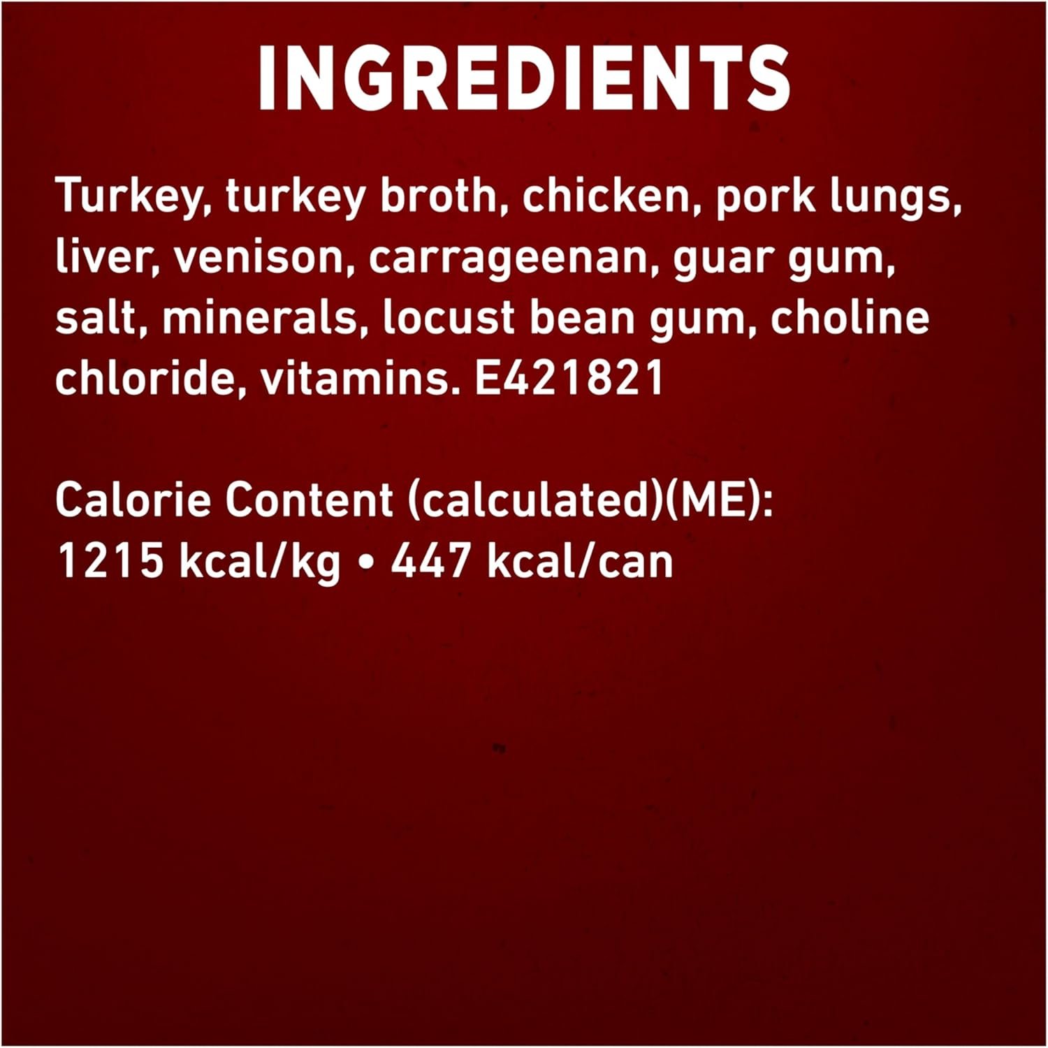 Satisfy your dog’s true instincts for real meat with Purina ONE True Instinct With Real Turkey & Venison Classic Ground Canned Dog Food. The nutrient-dense formula is made with real turkey as the #1 ingredient and includes real venison and other high-quality ingredients that are great for adult dogs of all breeds. It includes natural sources of glucosamine to help support your dog’s healthy joints. Plus, the tender, meaty grain-free recipe has zero artificial colours, flavours or fillers and no poultry by-products, so you can feel good about feeding your dog every day.