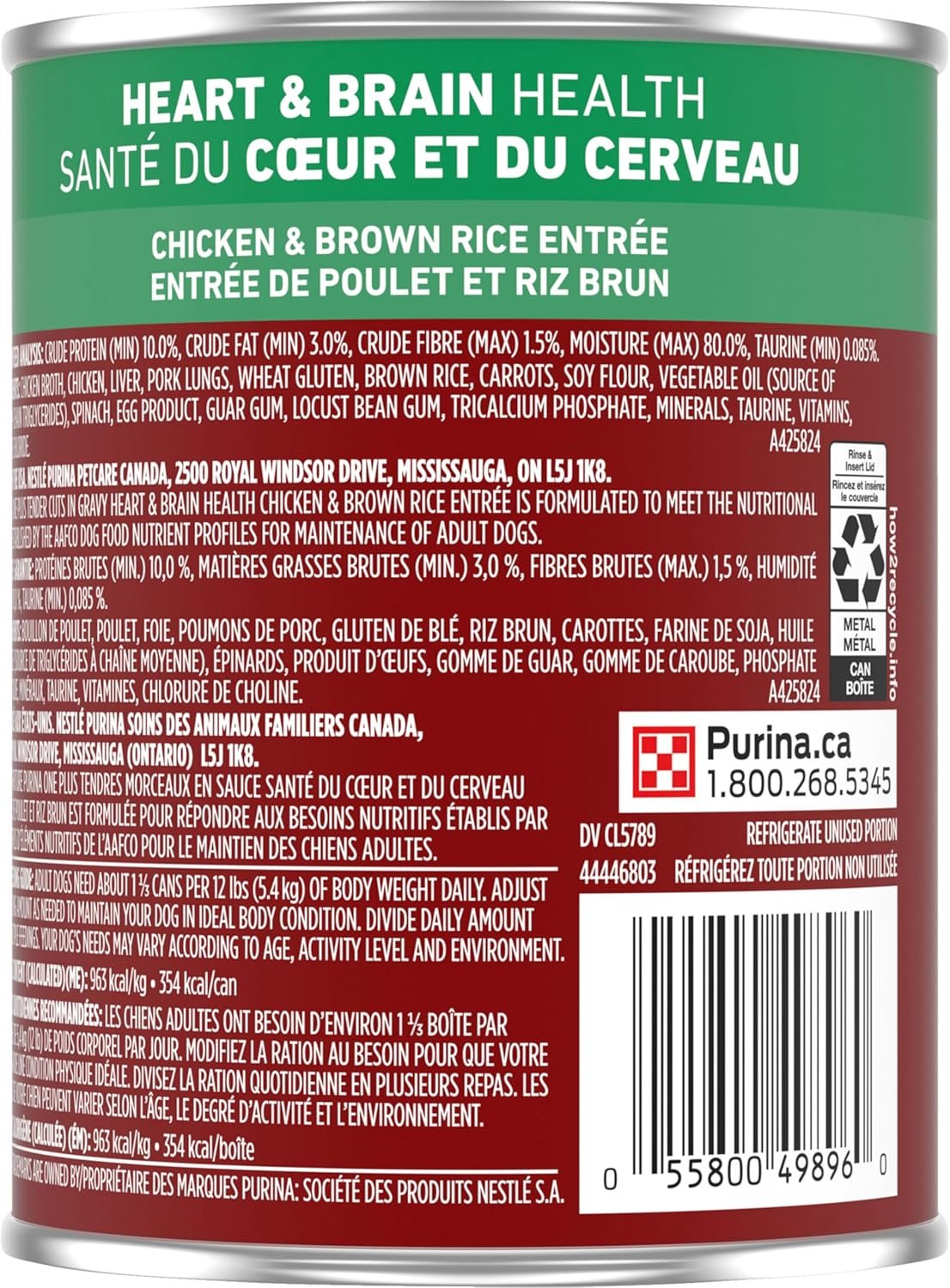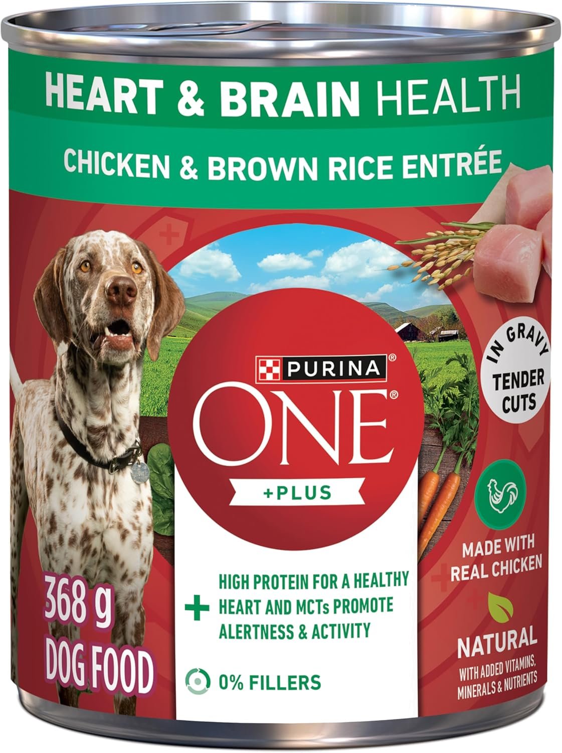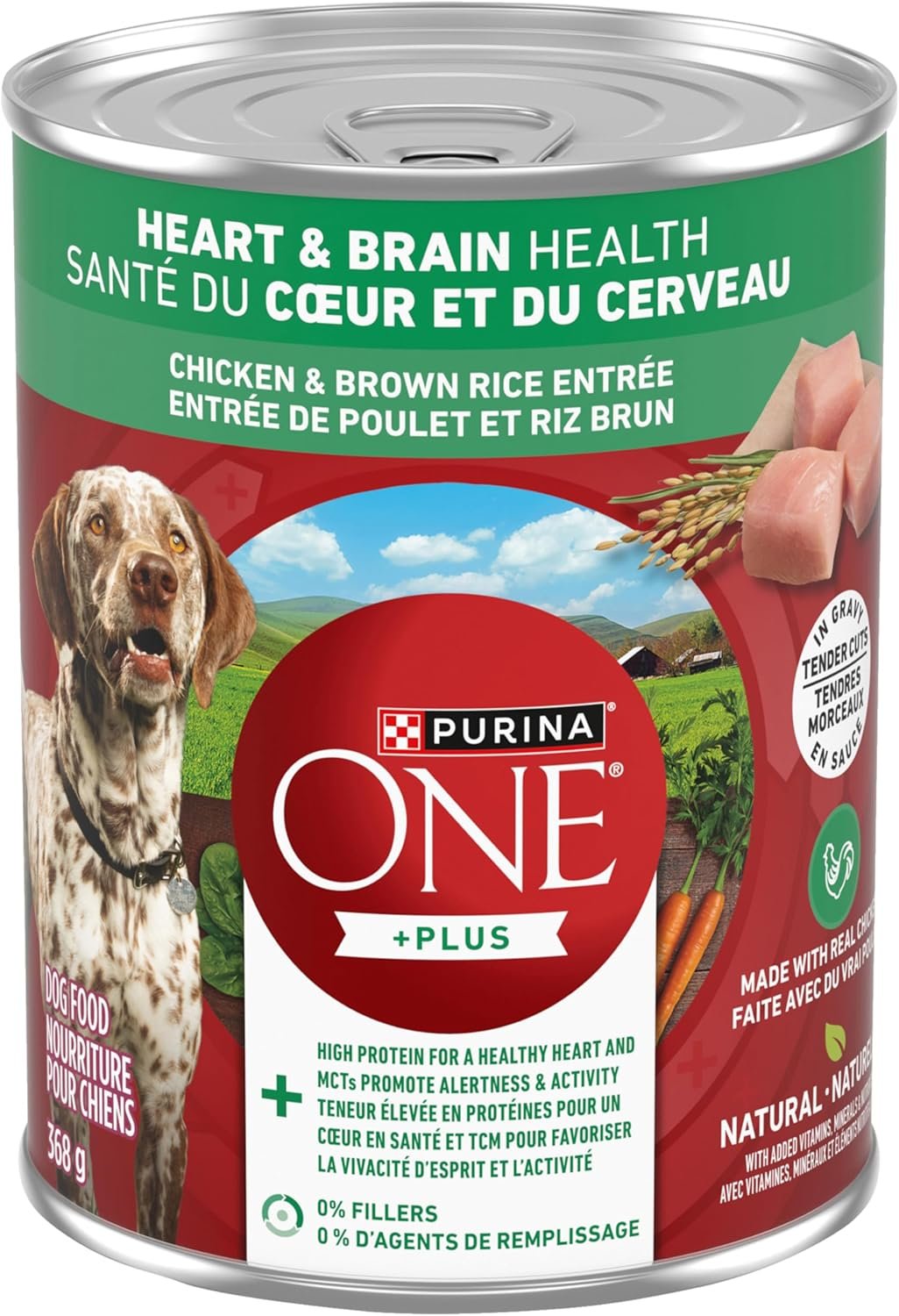 Purina ONE +Plus Wet Dog Food, Heart & Brain Health Chicken & Brown Rice Entrée – 368 g Can (12 Pack)