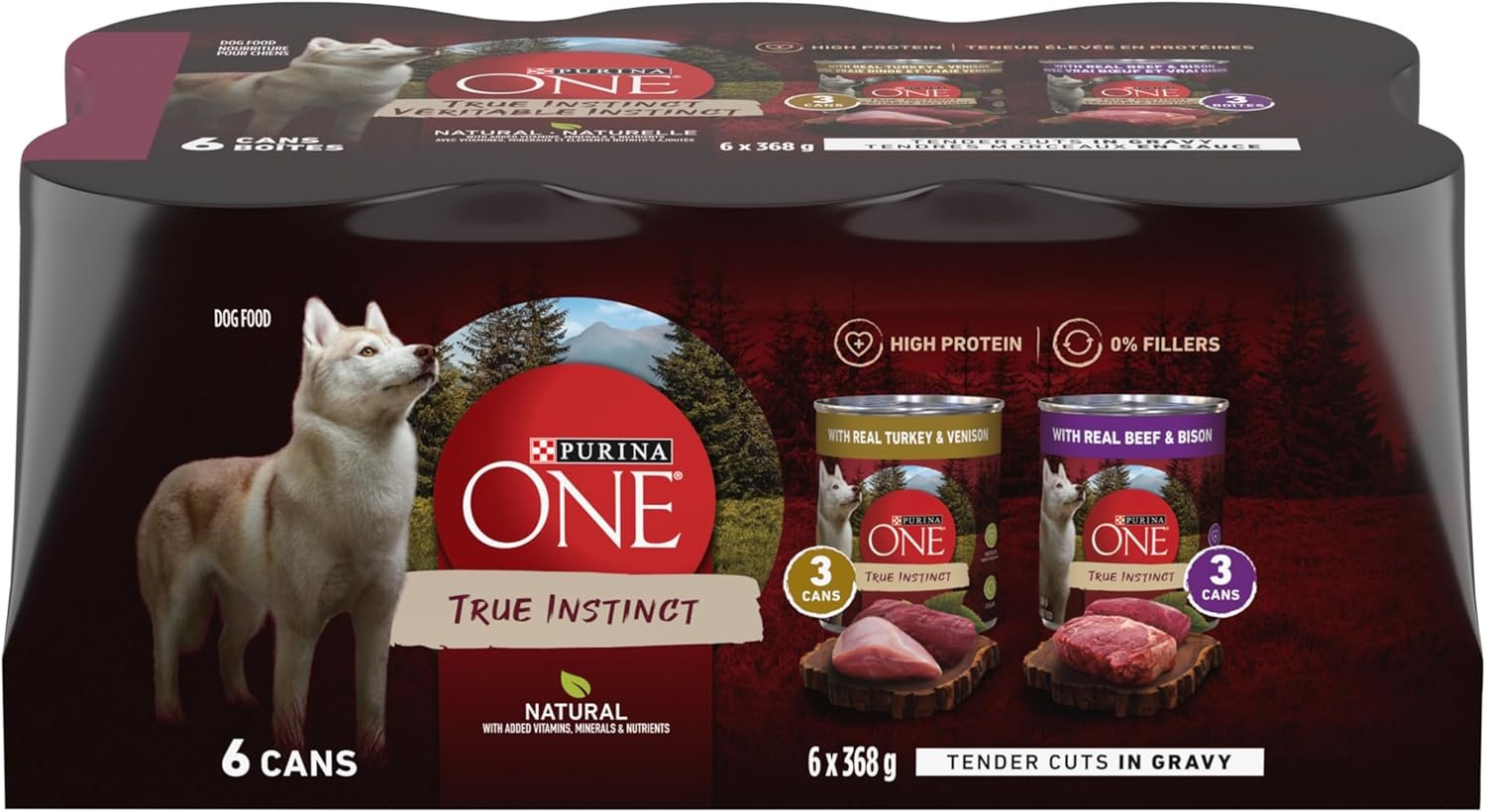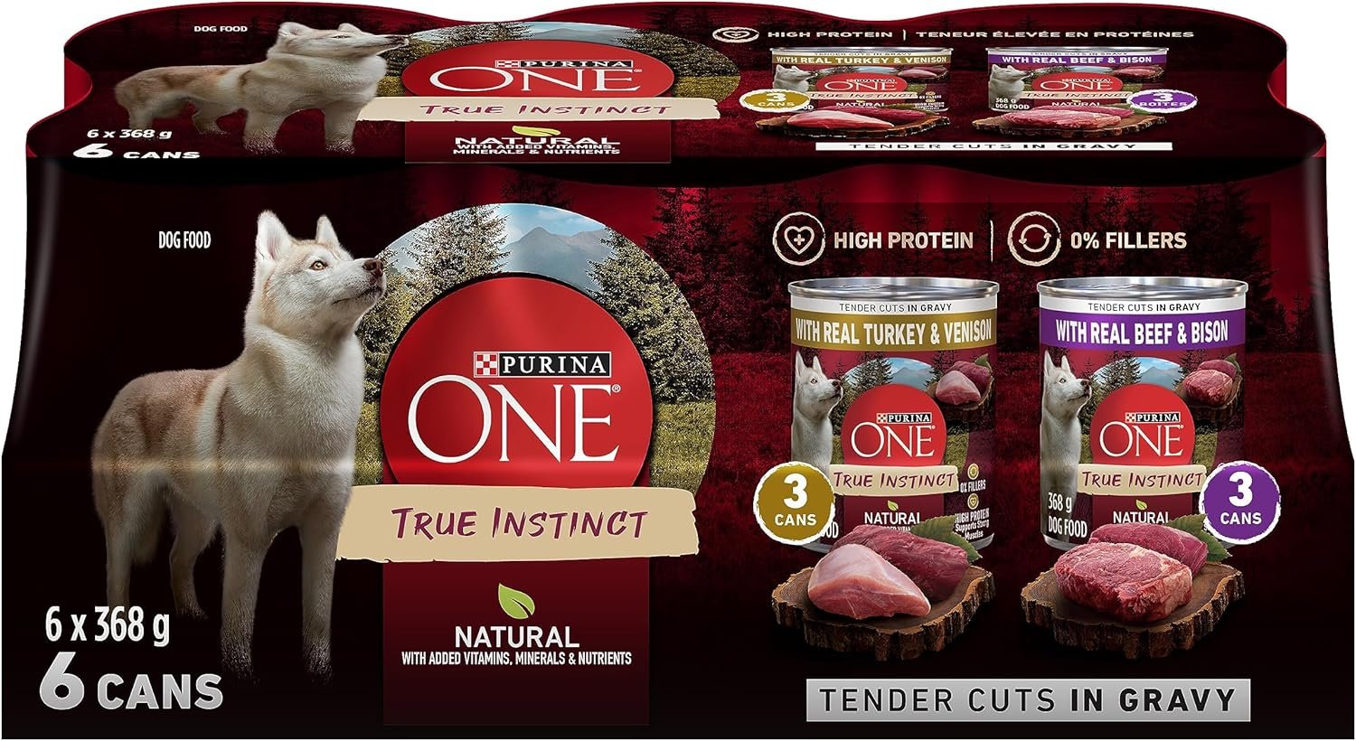 Purina ONE Tender Cuts True Instinct Wet Dog Food, in Gravy Variety Pack 2 Flavours – 368 g Can (6 Pack)