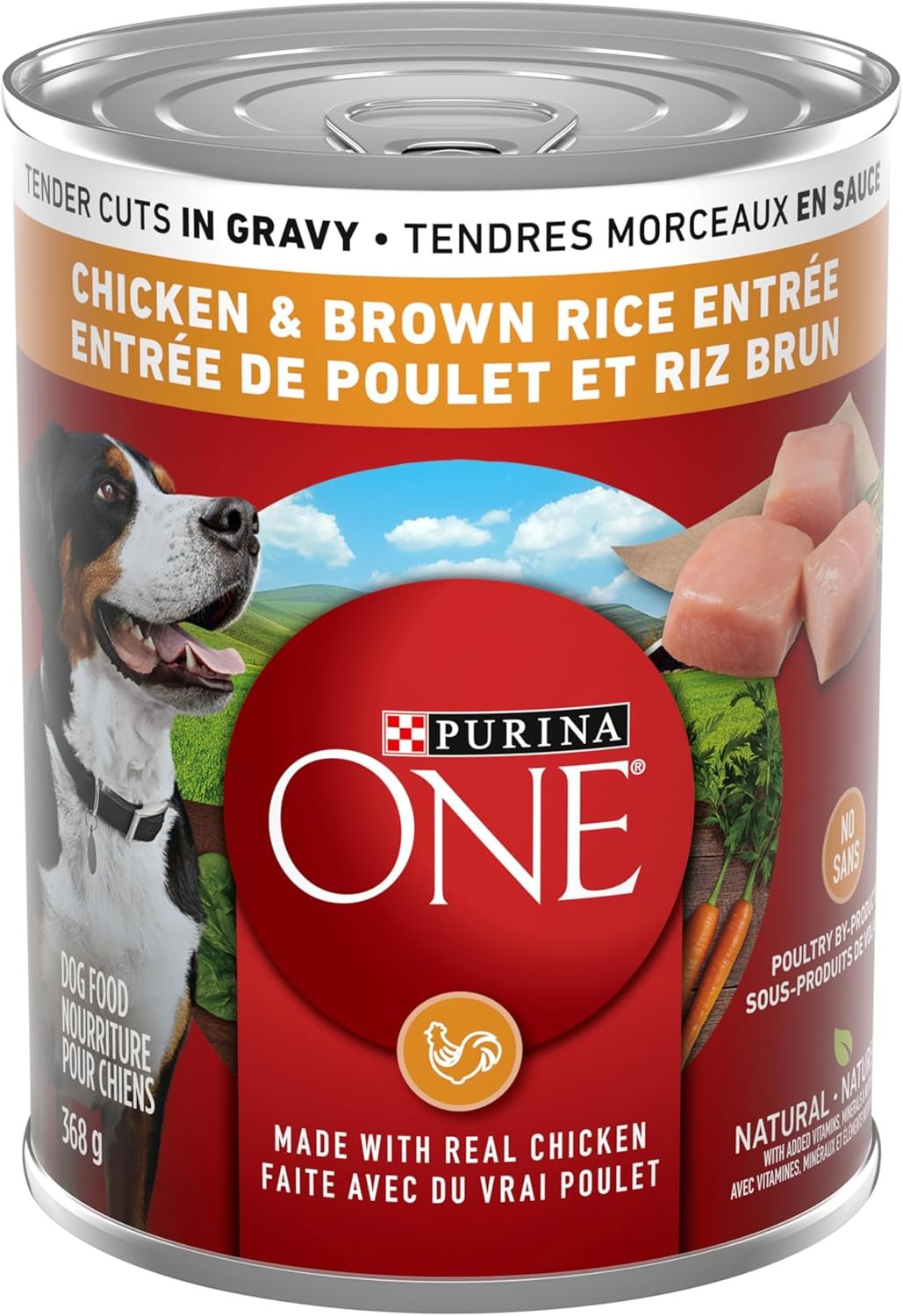 Purina ONE Chicken & Brown Rice Entrée Tender Cuts in Gravy is nutritionally complete for your adult dog. Made from select, high-quality ingredients plus vitamins and minerals, you can feel confident you’re providing the nutrition your dog needs to promote a lifetime of good health. Real chicken and brown rice in a savoury gravy provides a taste your dog will love, keeping them happy and satisfied.