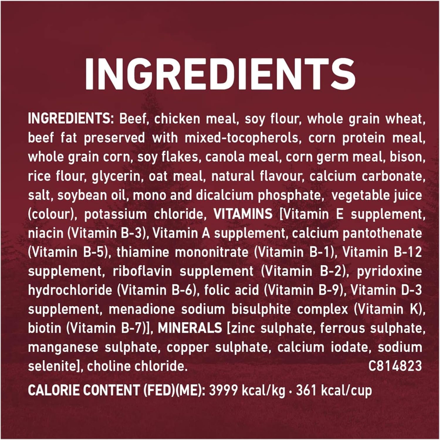 High protein dog food with real beef as the number 1 ingredient and bison contains 30 percent protein to support strong muscles, including a healthy heart, and an active lifestyle
