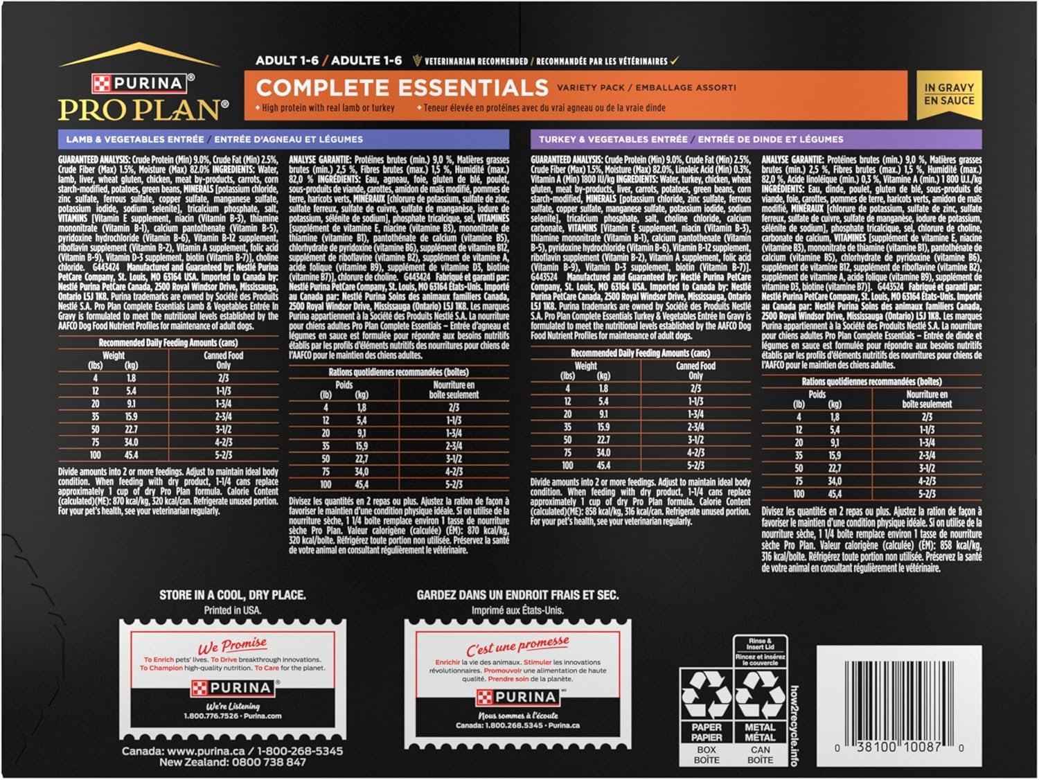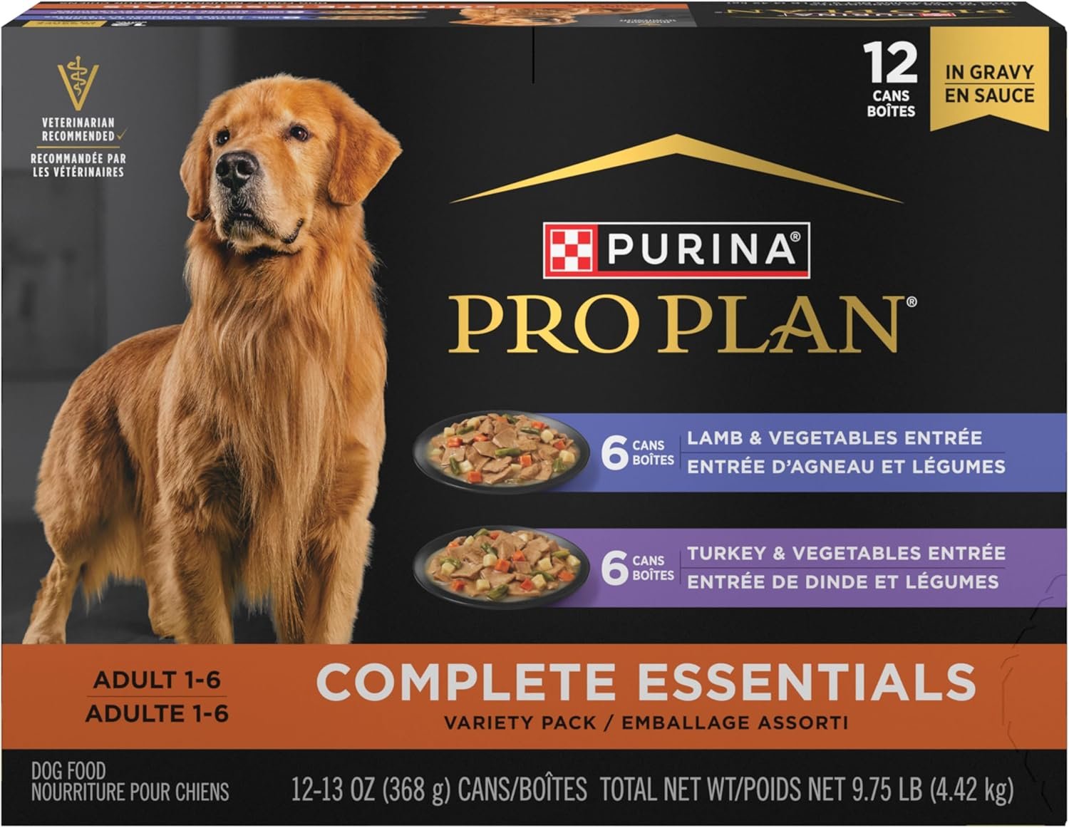 Purina Pro Plan Wet Dog Food Complete Essentials Variety Pack made with real turkey or lamb for a taste dogs love