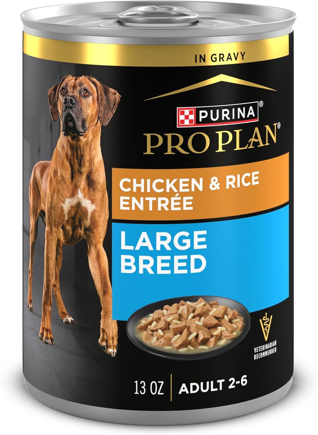 Purina Pro Plan Large Breed Wet Dog Food, Chicken & Rice Entree Chunks in Gravy – 368 g Can (12 Pack)