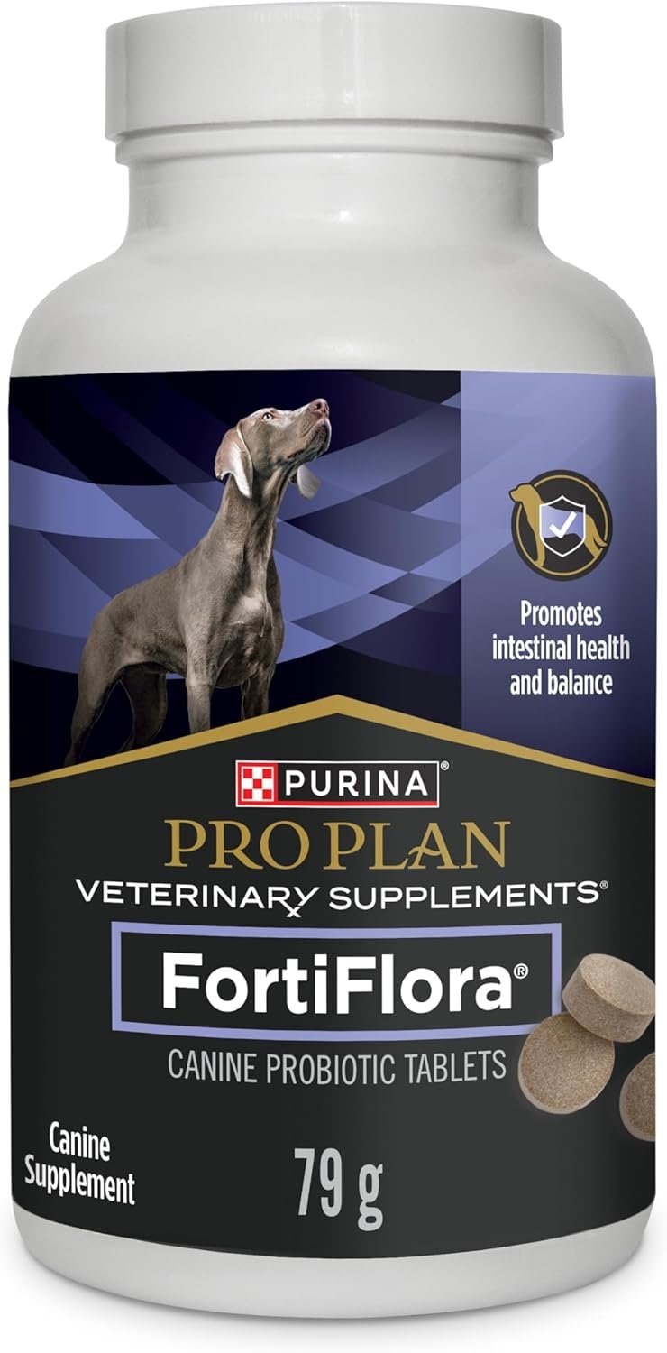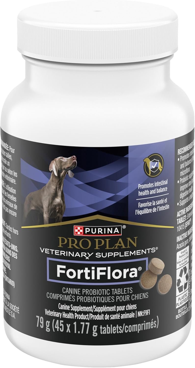 Provide specialized support for your dog with Purina® Pro Plan Veterinary Supplements® FortiFlora® Canine Probiotic Tablets. FortiFlora® probiotics for dogs contain a strain to promote intestinal health and balance. Formulated for dogs with digestive upsets, this effective tablet is easy to feed. Each tablet contains a guaranteed level of live microorganisms that promote the balance of healthy gut microflora. A proprietary microencapsulation process helps enhance the stability and survival of these probiotic supplements for dogs until they reach your dog’s intestinal tract. Purina® Pro Plan Veterinary Supplements® FortiFlora® Canine Probiotic Tablet is appropriate for administration to both puppies and adult dogs.