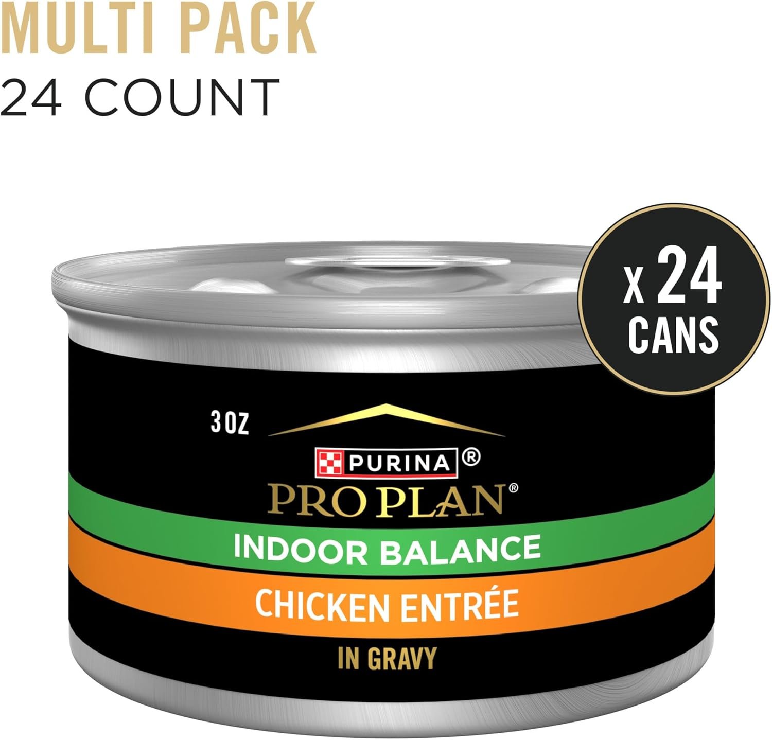 Purina Pro Plan Wet Cat Food, Specialized Indoor Balance Chicken Entrée – 85 g Can (24 Pack)