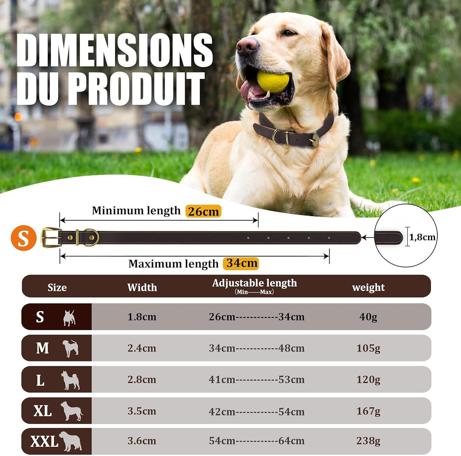 【Aesthetics Meets Functionality】The dog collar is crafted in a rich, stain-resistant dark brown and accented with metal D-rings and hardware, which add elegant details. This design is not only timeless and versatile but also practical for easy cleaning, striking the perfect balance between style and utility for dogs of all coat colors.