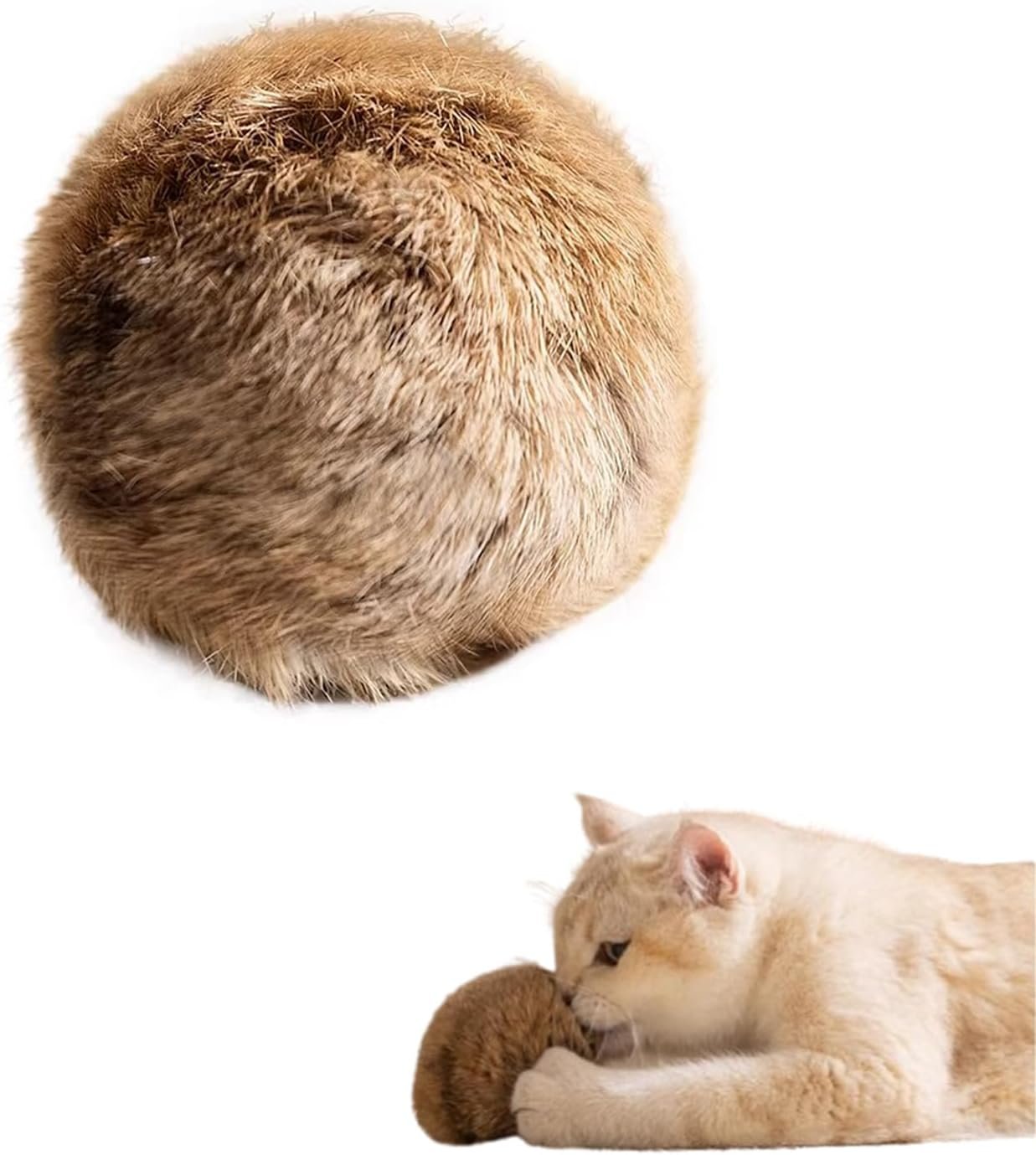 【Soft Material & Easy to Clean】The outer layer made of faux rabbit fur with carpet-like softness, comfortable touch, no smell that irritates cat skin, and can be safely used for your cat to bite, chew and chase. The cat toy ball is washable, easy to wash, quick-drying, durable and resistant to falling and bumping.