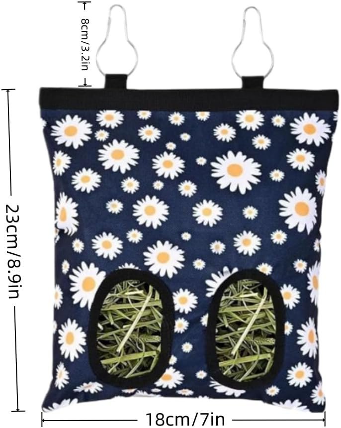 Rabbit Hay Feeder Bag, Hanging Washable 2-Hole Hay Dispenser for Bunny, Guinea Pigs, Chinchillas,Hamsters Rats and Other Small Pets Small Animal (Daisy)