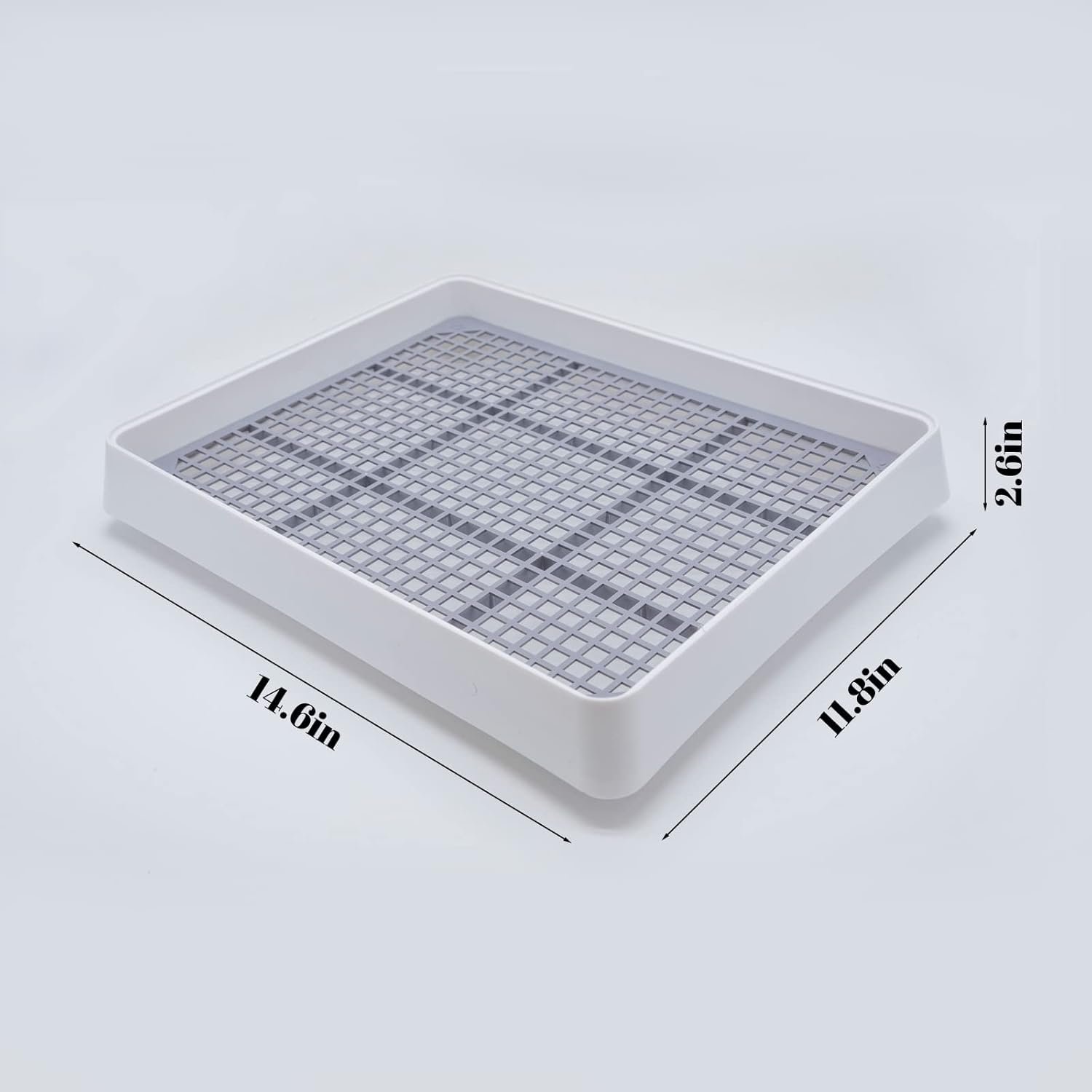 Large litter box: Beautiful shape, 14.6×11.8×2.6 inches large size litter box allows your pet to freely enjoy the process of peeing, while leaving enough room for your pet to move, and to avoid urine splashing other place or overflow.
