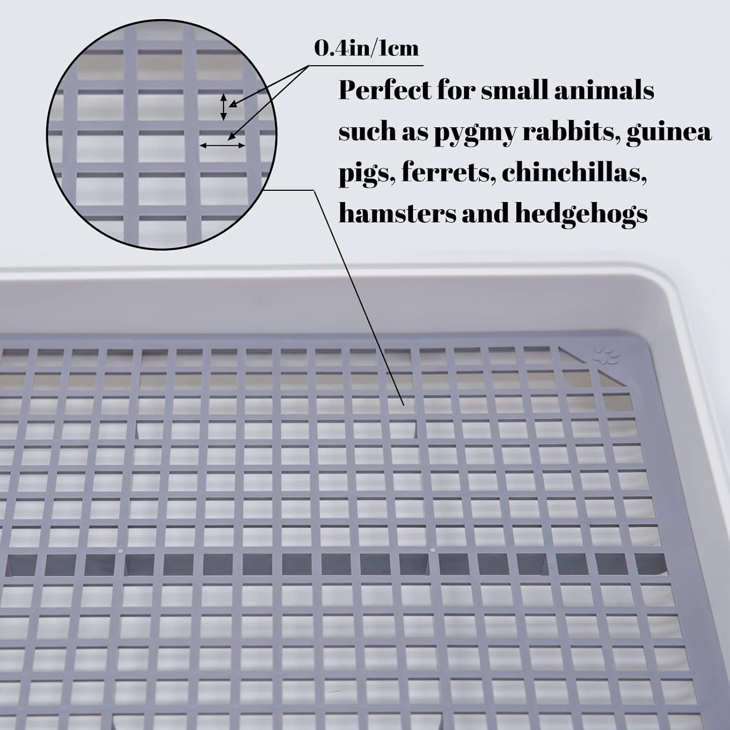 Grid design: The grid design of the sand basin has a strong load-bearing capacity, not only can withstand the random activities of pets, the feet will not be stuck in the grid, and the garbage can be easily discharged into the bottom of the box to avoid pets touching Dirty feet with their own excrement. Warm reminder: Larger adult rabbits are not suitable for this product due to their larger poop.