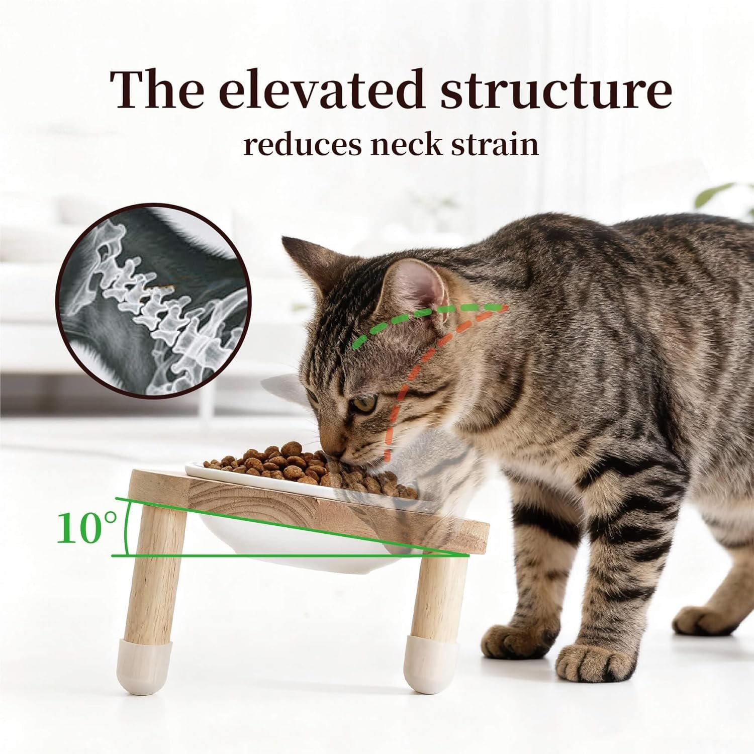 ERGONOMIC 10° TILTED DESIGN: Designed with a 10° tilt and a comfortable 3.54-inch (9 cm) raised height, this feeder helps reduce neck strain, promote better digestion, and improve eating posture for cats and small dogs.