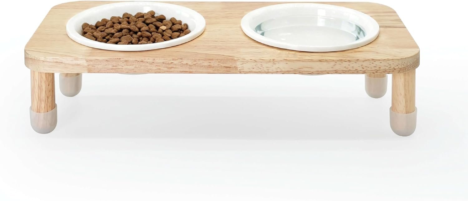 PREMIUM & SAFE MATERIALS: Includes two lead-free ceramic bowls and a sturdy stand crafted from natural Oak wood, ensuring a safe, hygienic, and easy-to-clean feeding station built for daily use.