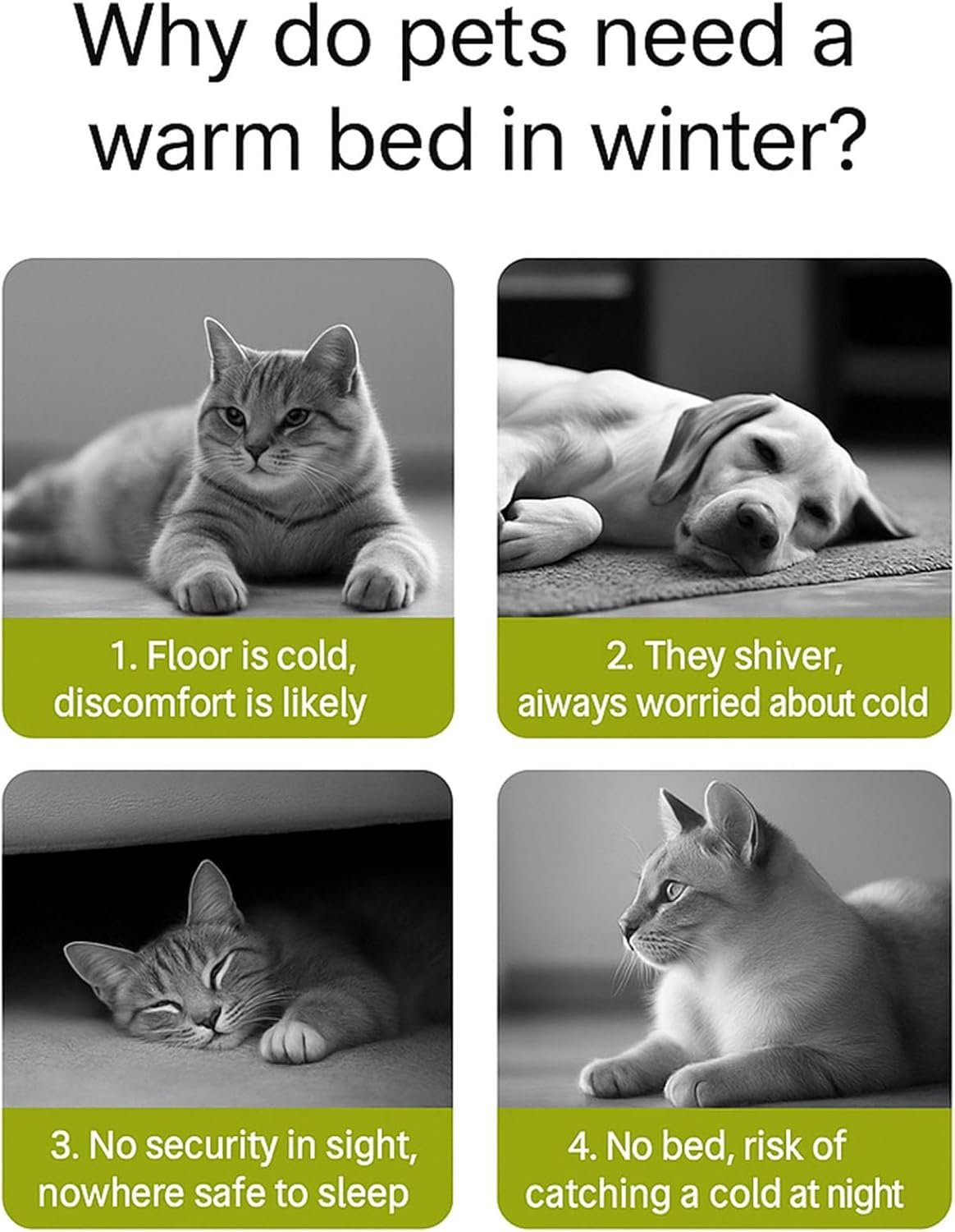 【Cozy & Warm Haven】Crafted from premium thick cotton fabric, this winter cat bed offers exceptional warmth and comfort. The enclosed cave design keeps your pets cozy during cold mornings and nights, creating a safe retreat for restful sleep.