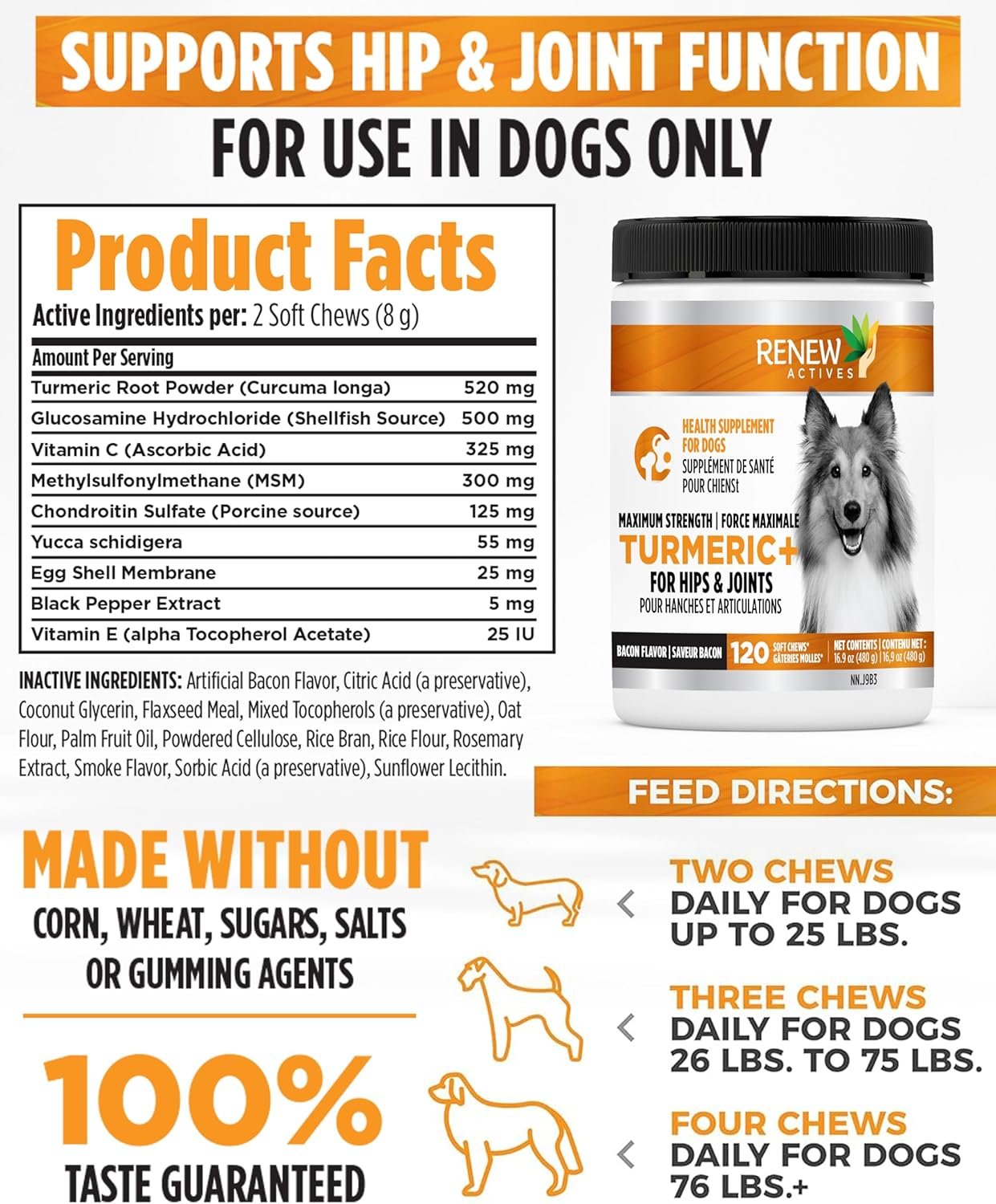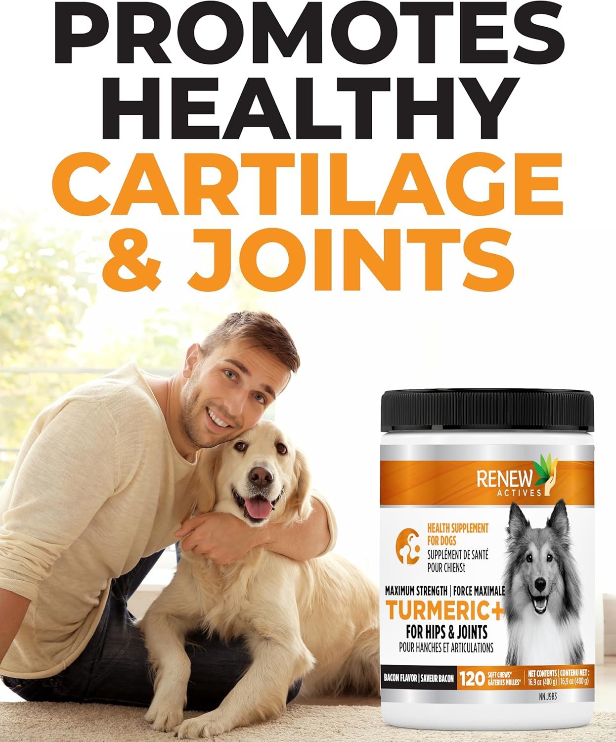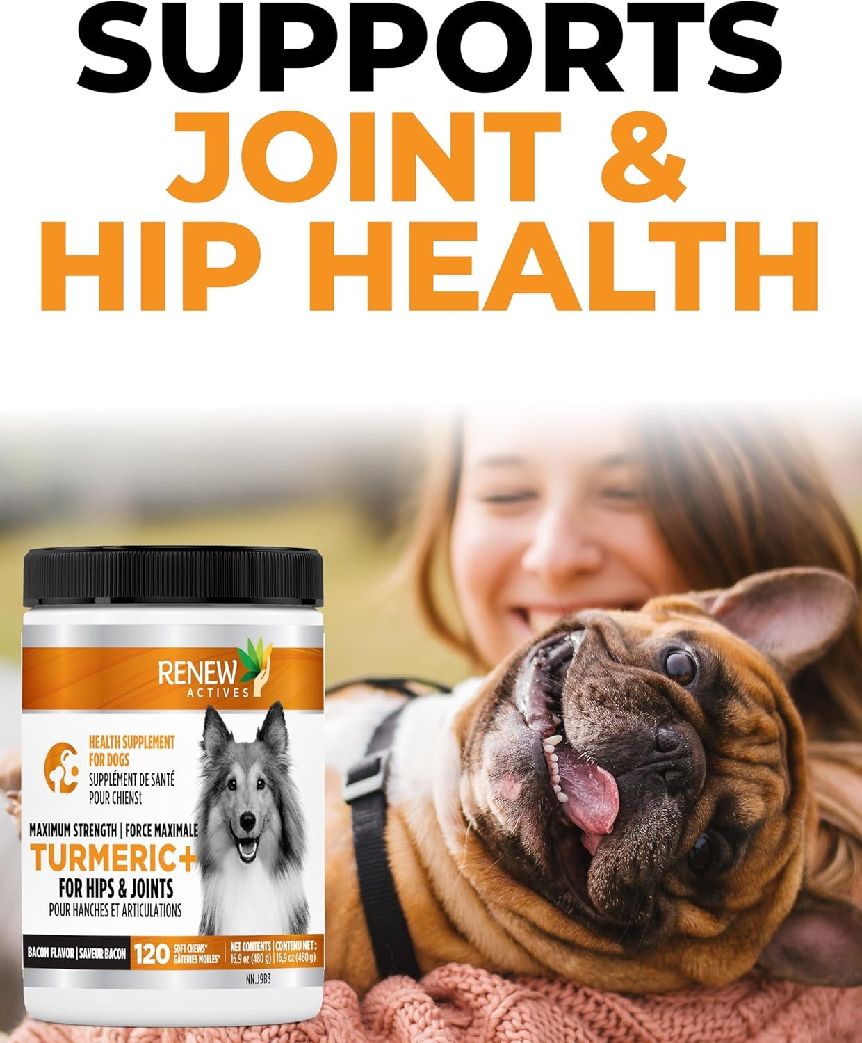 RENEW ACTIVES Organic Turmeric Soft Chews for Dogs – Daily Wellness Treat – 2 Chews per Serving – 120 Soft Chews