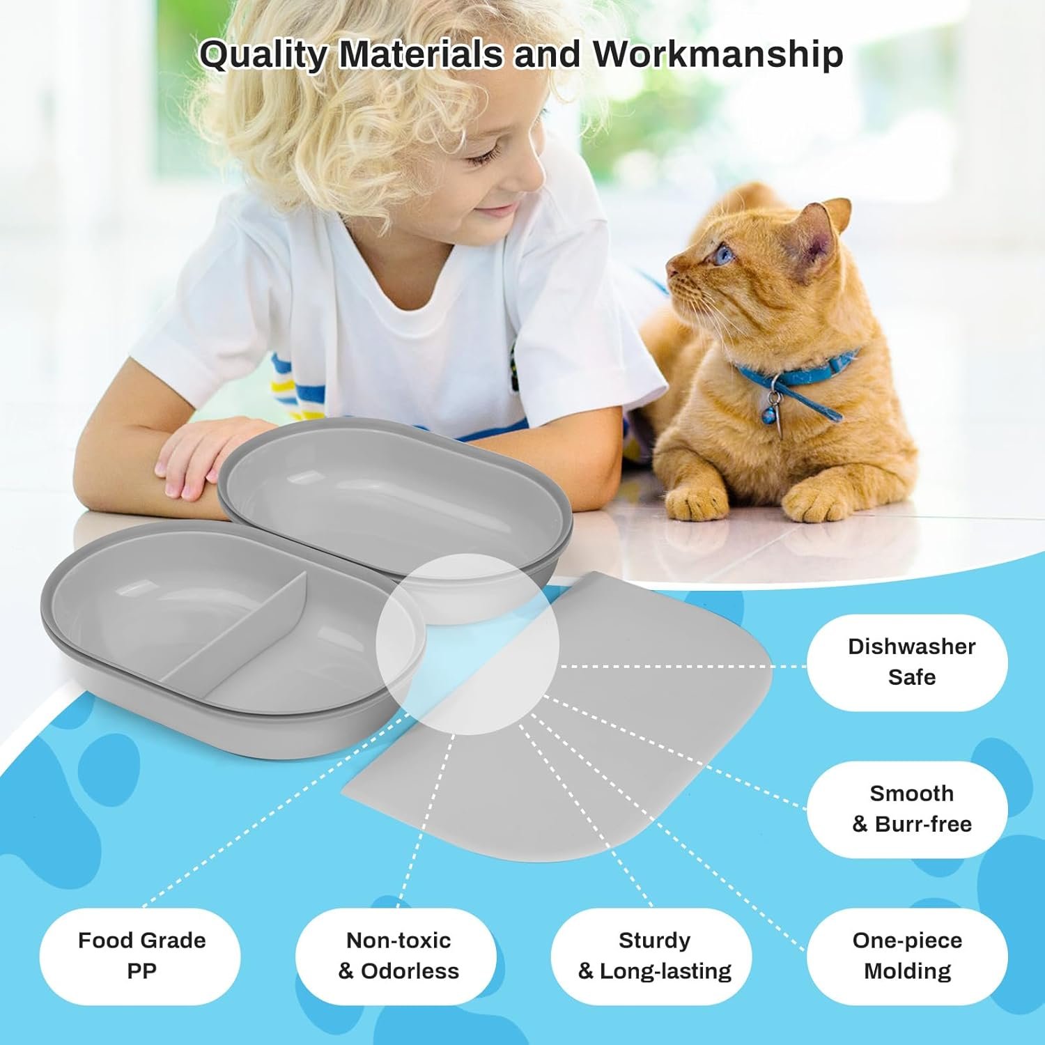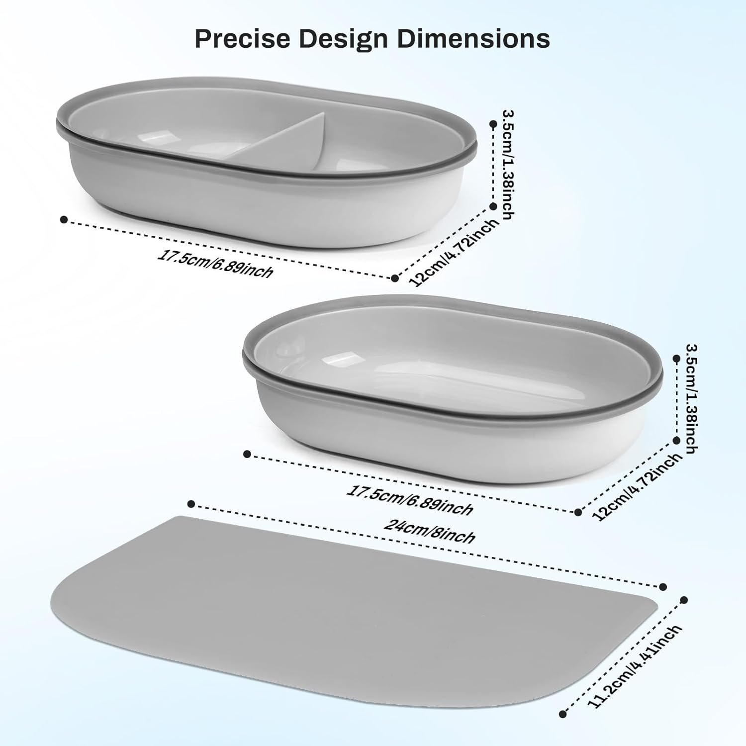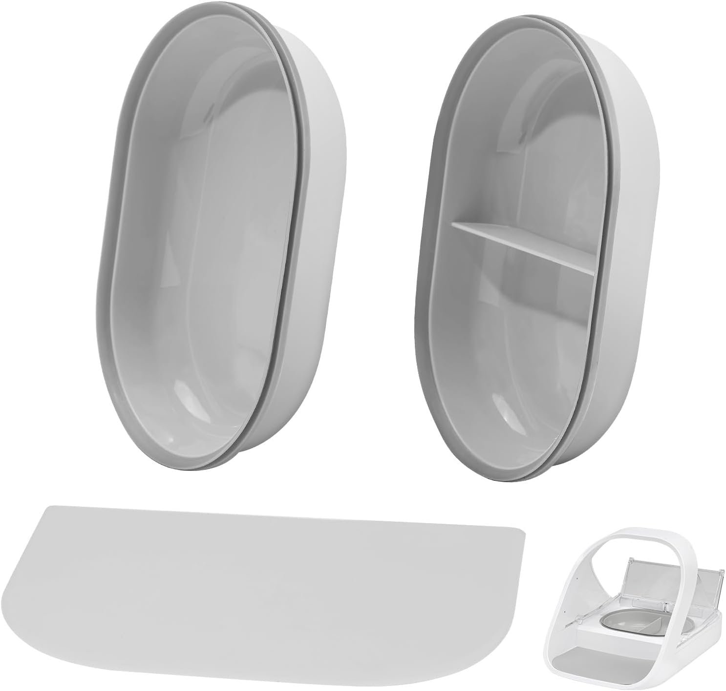 Replacement Mat & Bowl Set for Automatic Microchip Pet Feeder & Connect, 1 Split Bowl, 1 Single Bowl and 1 Mat, Keep Food Fresh, Protect Cat Feeder, Easy to Clean(Grey)