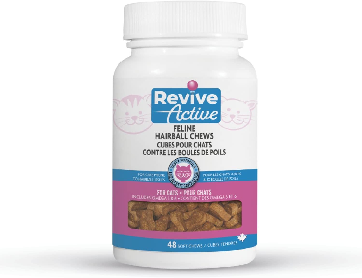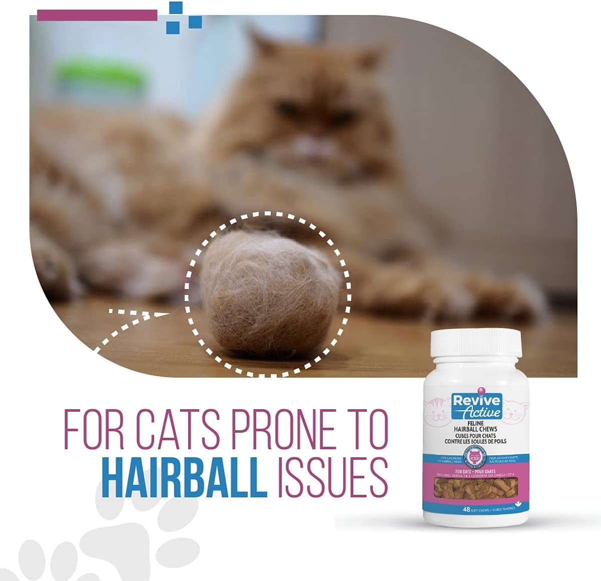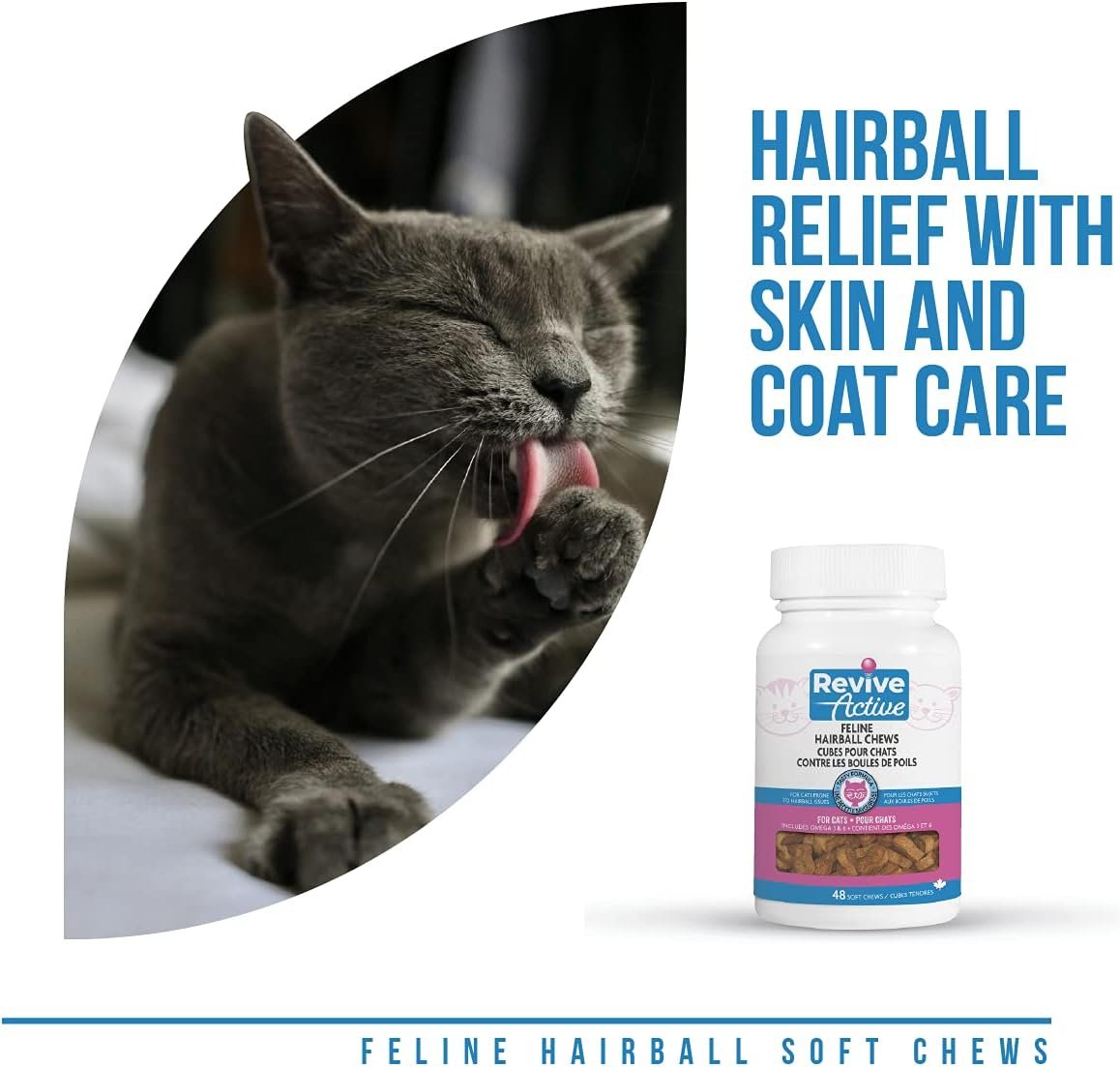 Revive Active – Feline Hairball Soft Chews 48ct – Cat Hairball Remedy, Designed Specifically for Cats That are Prone to Hairball Problems – Treats That Help Maintain a Healthy Coat.