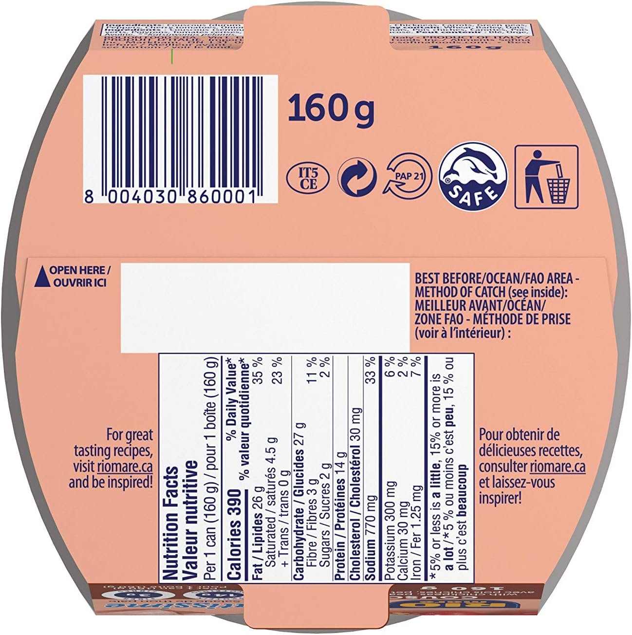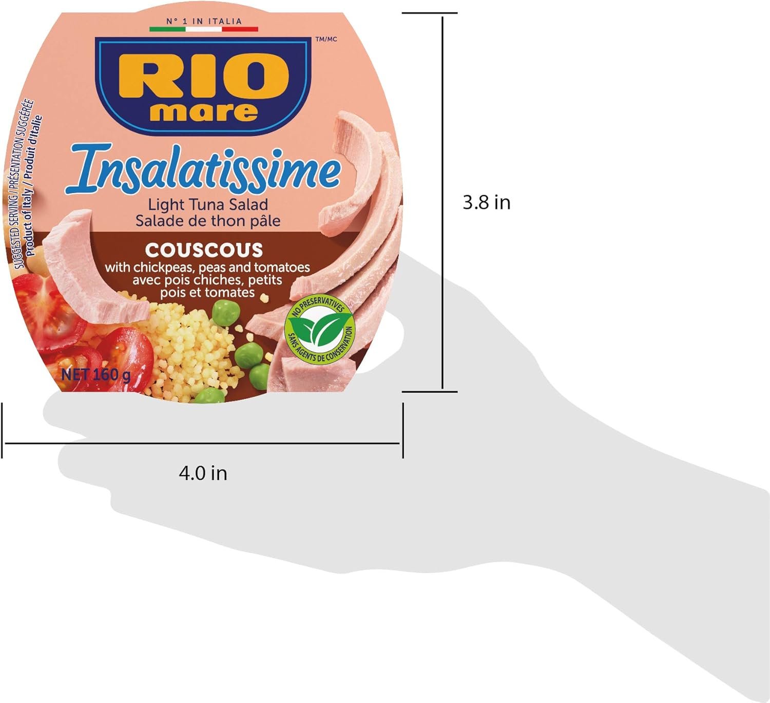 Rio Mare We at Rio Mare offer you Responsible Quality in all of our products. Rio Mare is committed to sustainable fishing, producing in low environmental impact plants and manufacturing premium-quality products for a balanced diet. Rio Mare – Insalatissime Couscous and Light Tuna, Ready to Eat Salad, High in Protein, No Preservatives The flavour of Italian Rio Mare tuna combined with the sweet and exotic flavour of cous cous and appetizing vegetables. Ready to eat meal at any time with easy-open tab and stay-fresh packaging. Product of Italy.Cooking tip: great on its own or fill it in your wrap or tortilla. Ingredients Skipjack tuna (Katsuwonus pelamis), cous cous, corn oil, chickpeas, carrots, peas, peppers, cherry tomatoes, onions, flavourings, salt, glucose syrup