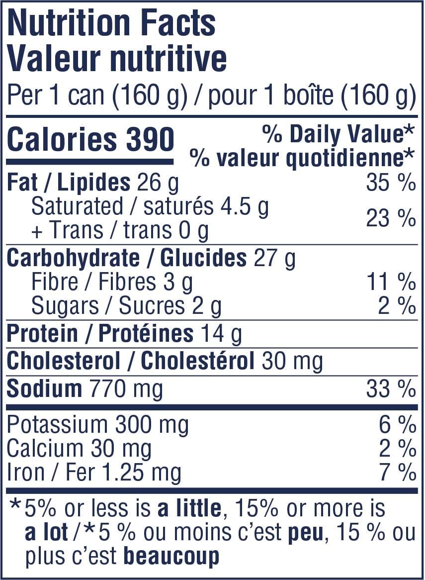 High in protein: 14g of protein and 3g of fibres per 160g can, all natural ingredients with no preservatives